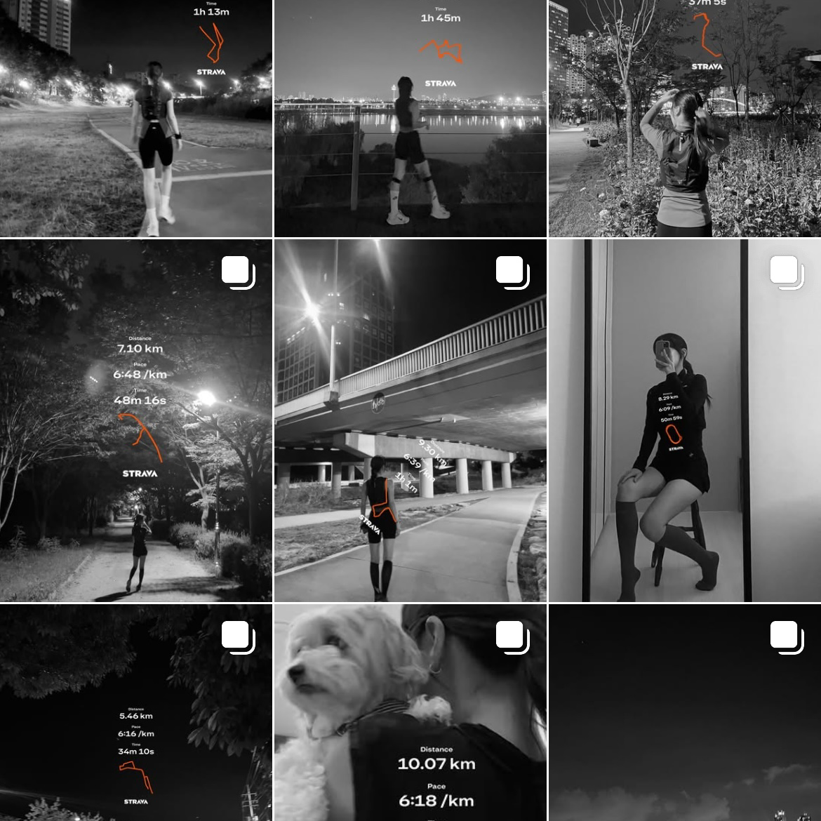 책을 보기만 하면 의미가 없어서 내용을 실행에 옮기기 시작했다. 최근에는 그냥 할 수 있는 것부터, 간단한 것부터 하라는 이야기가 있었다. 러닝 기록을 놓치는 것 같은 기분이 내내 들어서 어색하게 올리기 시작했는데, 어느새 패턴이 생기고 9칸을 채웠다. 기록은 그 자체로 나에게 의미를 주는 것 같았다. 달린 시간이 이곳에 쌓이고 있다. 뿌듯했다.