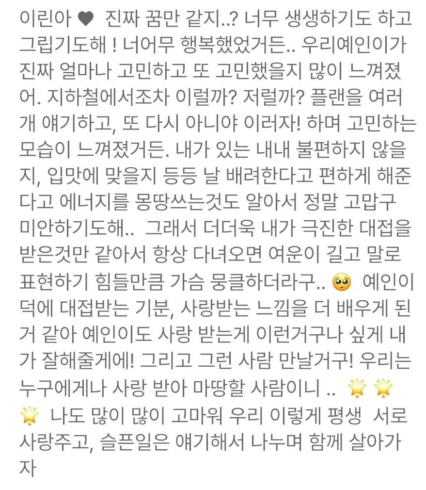 병원과 미용실에 다녀왔다. 약 기운인지 지하철 역까지 지나치며 졸았다. 별다른 일정이 없는 주말이 조금 아쉬울 수도 있겠다고 생각했는데, 잠깐의 외출로 금세 지치는 내 모습을 보며 쉴 수 있어 다행이라 생각했다. 빔이 생기고부터 매주 무엇을 볼지 기대감이 있다. 오늘은 영상미가 예뻐보였던 것을 봤는데, 나이가 한참 어린 이들의 이야기라 크게 공감이 되지 않았다. 그래도 여전히 어두워지고 난 후 나만의 영화관이 생기는 기분은 좋았다. 예지가 집으로 와 편안히 머물렀을 때의 대화로 하루를 마무리했다.
