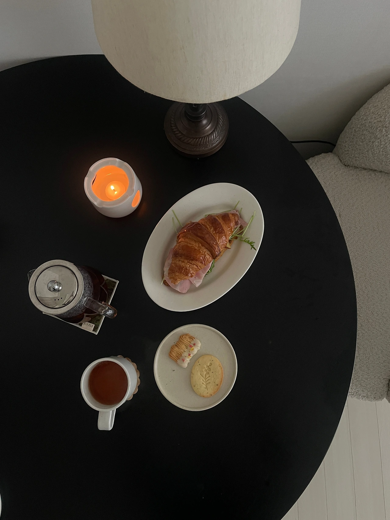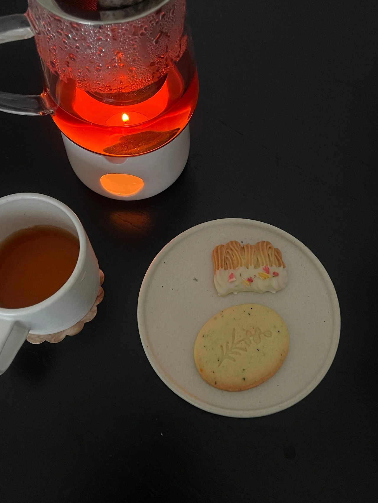 커피 대신 홍차를 내렸다. 캔들홀더 위에 유리 주전자를 투어 오래도록 따뜻한 차를 마실 수 있었다. 애플브리치즈샌드위치는 매주 먹어도 질리지 않았고, 세은님이 손수 만들어준 여리한 쿠키는 차와 무척 잘 어울렸다. 어쩌다 이렇게 정성스러운 사람들과 연을 맺었을까, 생각하다 보니 디마플 사장님도 떠올랐다. 어지러운 마음이 잠시 찾아와 '하..'하고 한숨을 뱉어내는 순간도 있지만, 충분하고 충만한 올해의 끝자락이다.