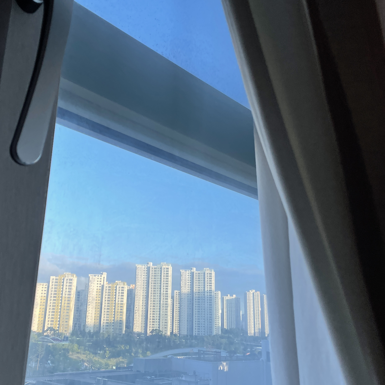 침대 바로 옆에는 하늘을 보여주는 창이 있다. 푹 자고 일어난 월요일 아침 커튼을 걷으니 환한 색이얶다. 비가 오다 말다 흐린 하늘을 많이 보아서인지 예쁜 날씨에 마음도 맑아졌다. 그렇게 산뜻한 노래들을 들으며 출근을 하고, 해야 할 일을 탁탁탁 마치니 그런대로 나의 일상이 참 좋게 느껴졌다.