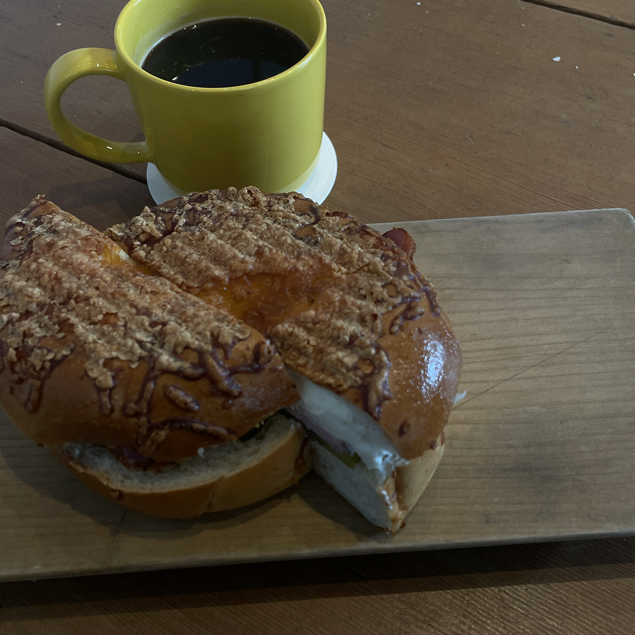 커피 한 모금을 마셨다. 확실히 맛있다. 금세 기분이 좋아졌다. 베이글샌드위치도 부드럽고 단짠했다. 일하는 곳 가까이에 맛있는 베이글집이 있는 건 행운이다.