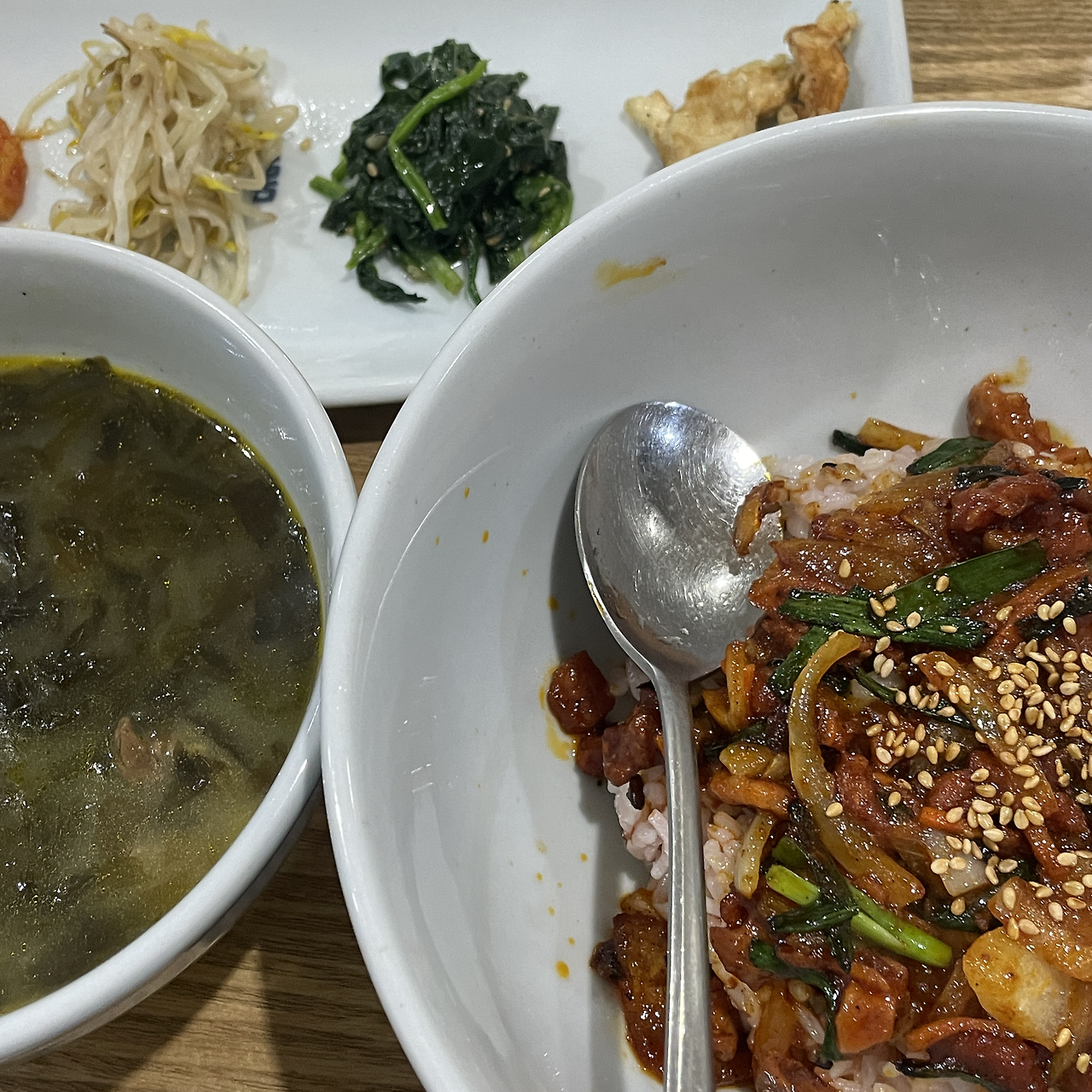 퇴근하고 러닝하러 가려고 했는데, 끝날 때쯤 두통이 오고 조금 어지러웠다. 어제 저녁부터 밀가루만 먹어 그런가, 요가가 무리였나, 생각하다가 우선 저녁을 먹기로 했다. 오랜만에 이곳이 생각났다. 따뜻한 곳, 집밥 같은 곳, 이 차림을 보니 반갑고 감사했다. 교보를 걸으며 책 제목을 살피고, 풍경을 보니 한결 나아졌다.