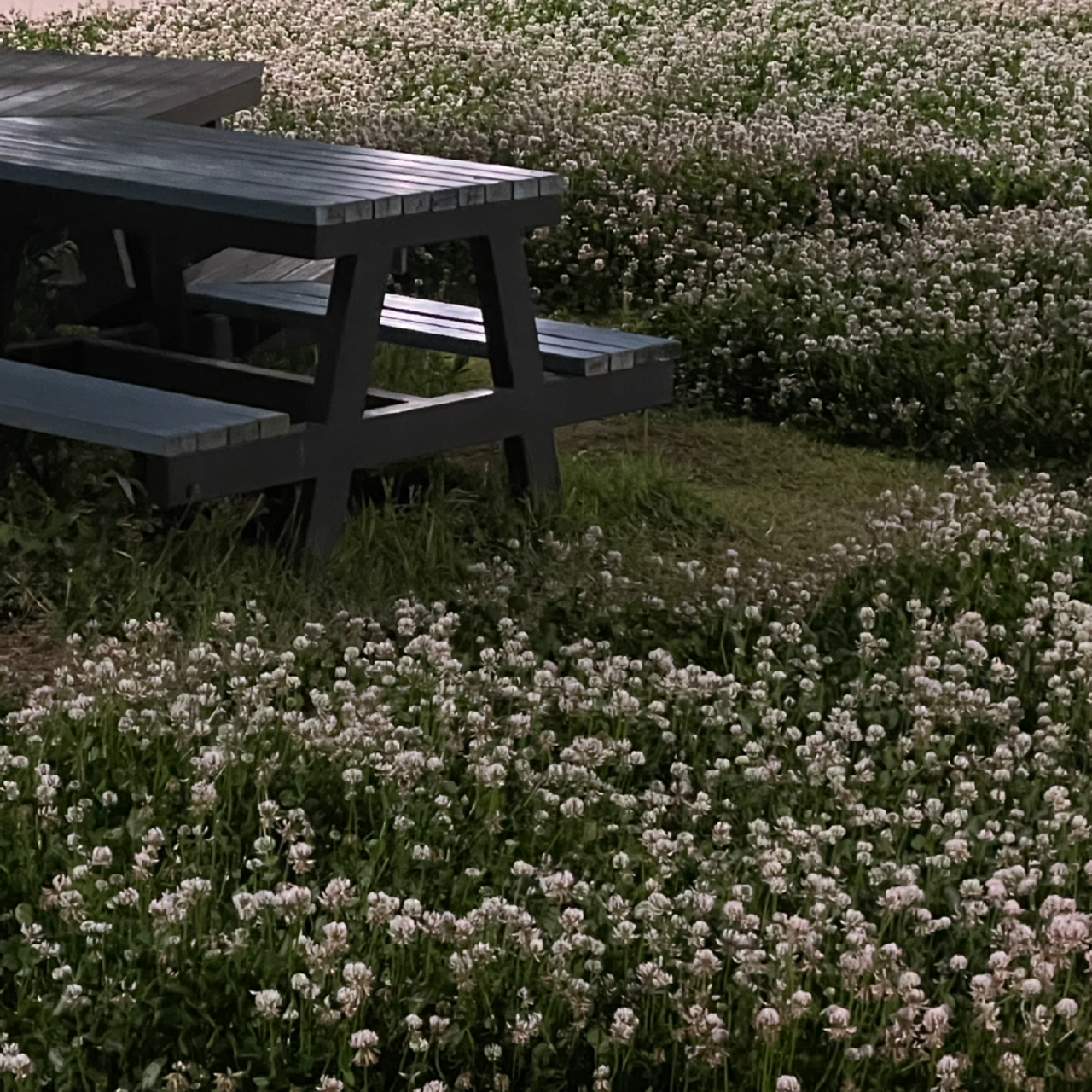 먹고 싶은 저녁 메뉴가 없어 고민하다가 최근에 먹고 맛있었던 햄버거를 포장 주문했다. 그런데 옆에서 완료하자마자 "아!!" 하는 소리가 들렸다. 조금 먼 곳의 지점을 선택했던 것이다. 날도 좋으니 그냥 걸어서 찾으러 가자고 했고, 삼십분을 걸었다. 돌아오는 길 우연히 발견한 벤치에서 들꽃에 둘러싸여 먹기 시작했다. 이런 곳이 있는 줄 몰랐는데, 우연한 발견들 사이에서 좋은 저녁을 보냈다.