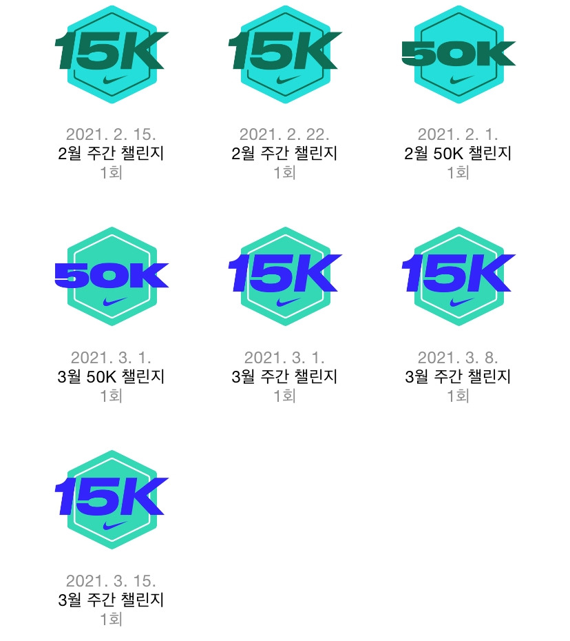 그나마 다이어트라는 영원불멸 목표와 백수가 되면서 다시 기하급수적으로 늘어난 시간이 있으니 운동을 하긴 하는데 운동을 하면 할수록 (식단이 안 되니) 더 몸이 커지는 느낌이라 딱 그만두고 싶은 생각이 들 때 즈음, 한 러닝 어플의 기록 인증 배지가 생각났다.