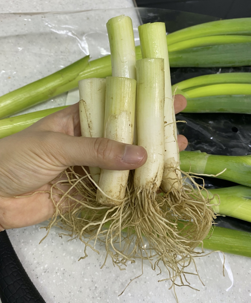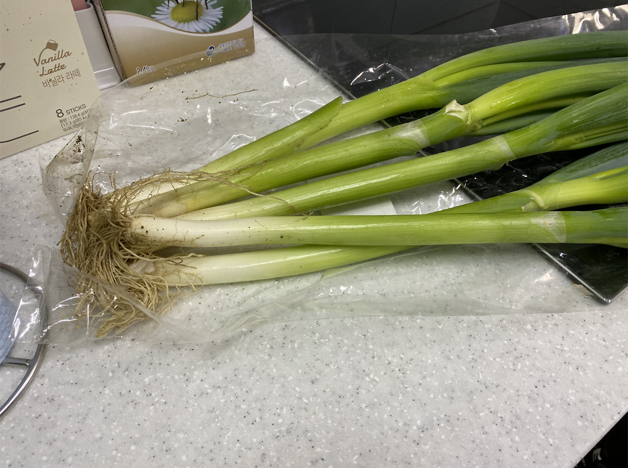 뿌리가 잘 살아있을수록 좋다고 해서 튼실하고 뿌리가 살아있는 대파 한 단을 입양했다.