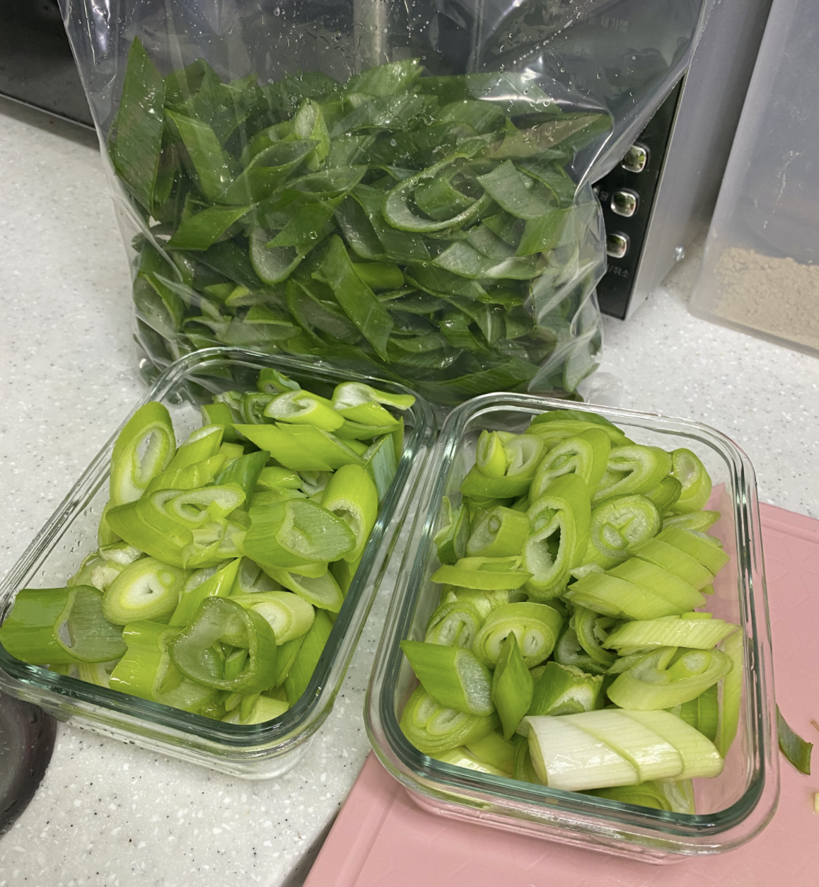 남은 파들은 먹기 좋게 잘라놓았다.