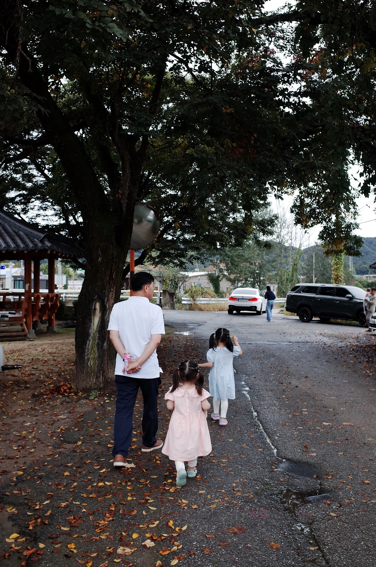 심심해 하는 손녀들과 함께 산책을 나가는 할아부지