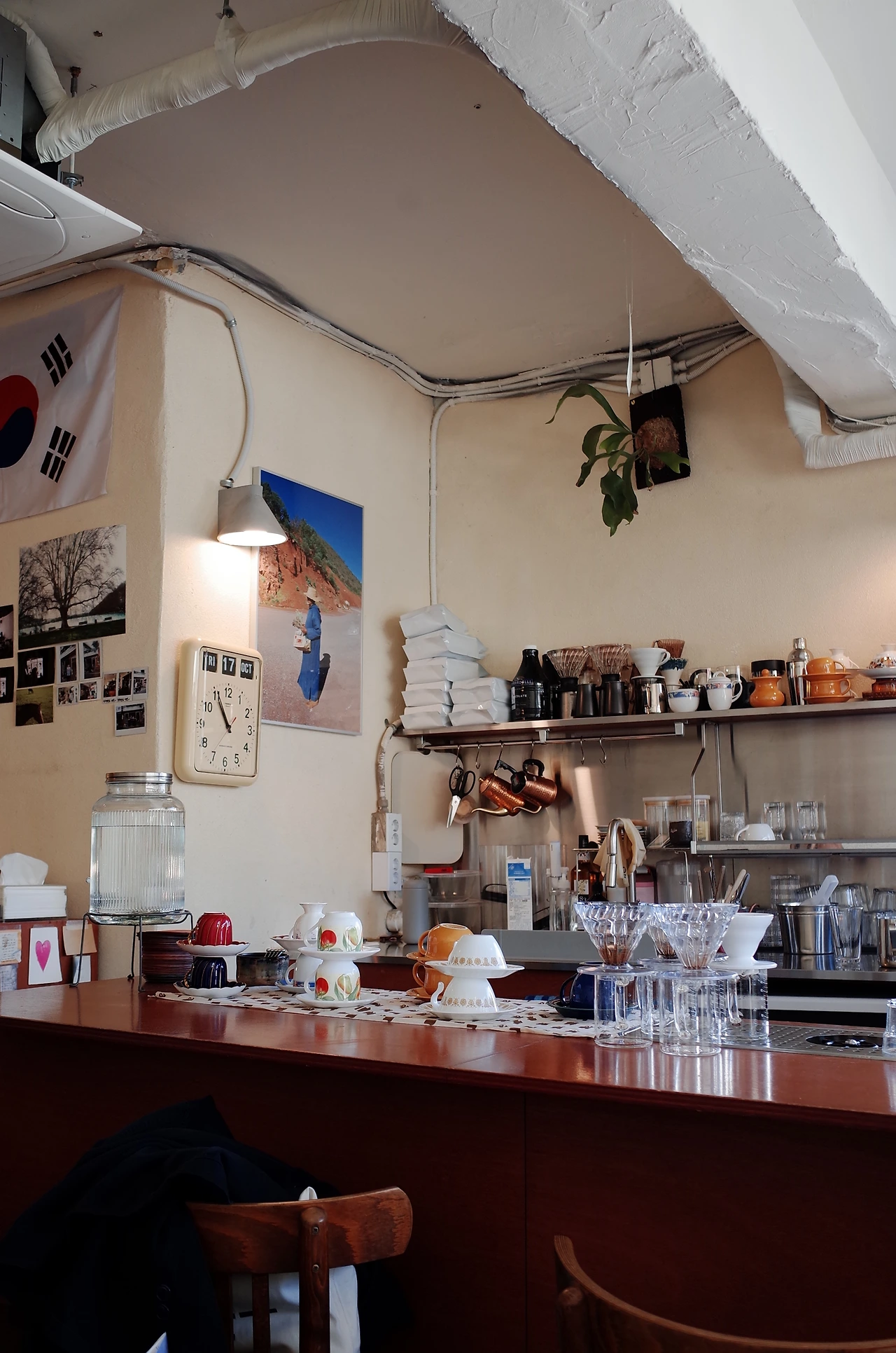 아침부터 집에서 이것저것 수리를 받는 바람에, 결국 계획했던 일정 중에 딱 하나만 선택해야 했다. 그렇다면 29cm와 함께 하는 DDP 서울 디자인 위크를 가기로 마음먹고 10시에 집을 나섰다. 동대문구 지도를 펼쳐보니 저장해 둔 카페 중에 애락이 있었다. (누군가 좋은 곳을 추천해 주면 네이버 지도에 카페/음식점/술집으로 나누어 저장을 해둔다.) DDP에서도 걸어서 10분이라 가벼운 마음으로 갔는데, 아마도 그날 제일 잘한 일이 아닐까. 마치 원래 알던 사람처럼 반갑게 인사해 주시는 바리스타 분들의 표정에 기분이 좋아졌다. 애락 블랜딩을 주문해 놓고 앉았는데 익숙하게 아침 인사를 주고받는 동네 어르신 분들이 많다. 공간은 아주 크지는 않지만 그 안을 밀도 있게 채워두셨다. 무심하게 턱턱 놓인 가구나 빈티지 찻잔은 또 얼마나 예쁜지! 책을 읽으려고 했다가 마음을 고쳐먹고 음악을 들으며 커피를 마시다가 사진을 찍다가 멍을 때리며 한가로운 시간을 보냈다. 다 마시고 나오기 까진 30분 정도, 이 30분 동안 한숨을 돌리고 생각을 정리한다. 아침에 정신없던 나를 차분하게 가라앉히는 시간. 참, 소중하다. 한동안 아침 커피챗을 하지 않았는데 다시 해봐야겠다는 생각이 문득 든다.