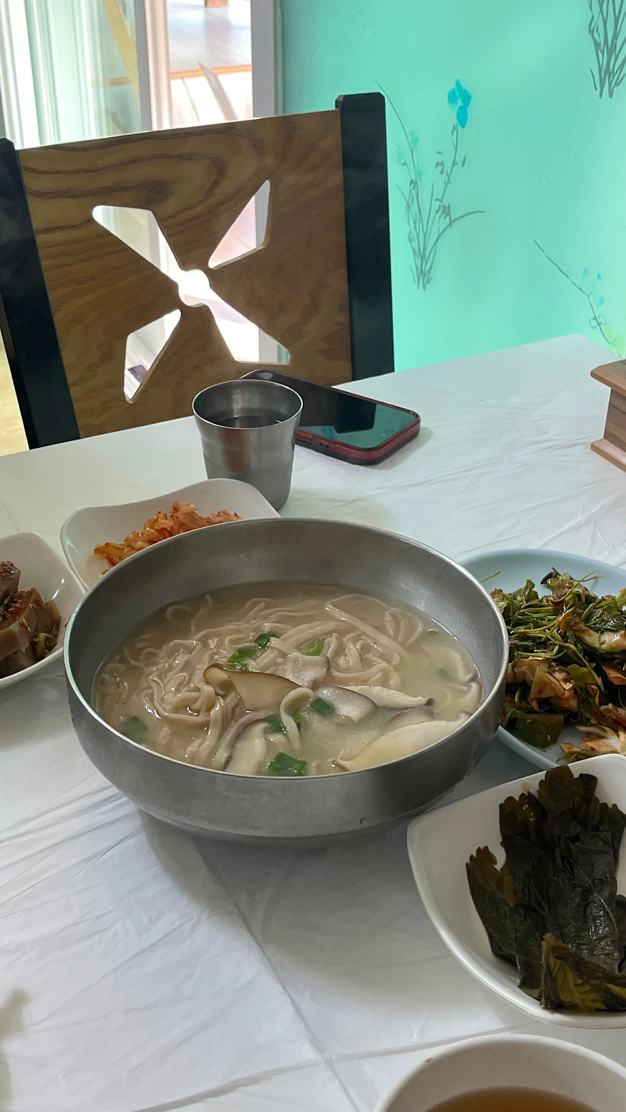이번 여행에서 새롭게 발견한 맛집이 하나 있습니다. 맹그로브의 매니저님들이 항상 추천하던 곳인데 이번에 처음 가봤어요. 새참칼국수라는 곳인데 메뉴는 딱 세 가지이고 들깨칼국수, 보리비빔밥, 콩국수입니다. (콩국수는 여름 메뉴예요.) 점심 장사만 하는데 오픈하는 시간부터 사람들이 끊이지 않습니다. 고성에서도 안으로 좀 더 들어가야 하는 곳에 있는데, 사람들이 어떻게 알고 찾아오는 걸까요? 가보니 지역 주민들은 물론이고 관광객들도 많더라고요. 특히 메뉴 덕분에 아이들이 많은 팀도 보였어요. 그런데 이번에 가보니 그간 왜 여기를 오지 않았는데 후회가 되었습니다. 사장님이 정말 친절하신데다가 음식이 정말! 맛있었습니다. 자극적이지 않은데 심심하지 않고 간이 잘 맞아서 계속 집어 먹게 되는 곳이에요. 가격도 9000원이라 부담이 없고, 이 가격에도 밥과 반찬이 다 리필이 되기 때문에 정말 좋지요. 여쭤봐도 말끝을 흐리시는 이름 모를 산나물 무침으로 아침 입맛을 돋우고, 들깨인데도 텁텁하지 않고 되려 깔끔한 국물의 칼국수로 배를 든든하게 채웠습니다. 이런 곳을 이제야 가 보다니, 아직도 고성엔 제가 가볼 곳이 너무나 많습니다.