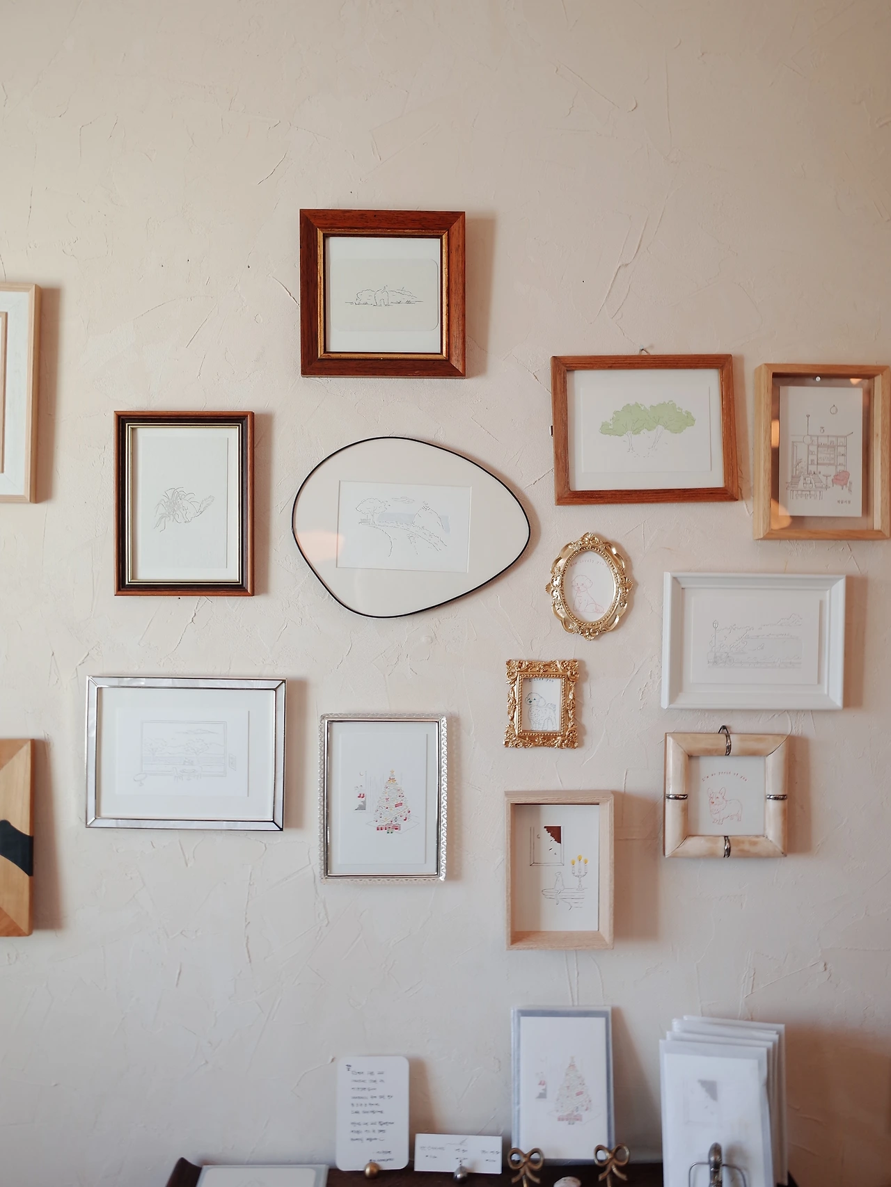 속초엔 동아서점과 문우당서림이 있지만, 고성엔 작고 강한 북끝서점이 있습니다. 여기 서점 사장님의 큐레이션을 좋아해요. 그림책을 좋아하는 저는 갈 때마다 바뀌어 있는 그림책을 하나하나 살펴보는데, 이번에도 마음에 쏙 들어 가방에 자리가 없는데도 두권이나 꾸역꾸역 사 왔습니다. 사장님이 좋아하는 테마에 따라 여러 책들이 나뉘어져 있고, 신간들은 제대로 눈길을 받을 수 있게 큰 책상 2개에 나란히 펼쳐져 있습니다. 북끝서점에는 작은 창 앞에 방명록을 쓸 수 있는 테이블이 있어요. 그 방명록이 바닥까지 이어져 산더미같이 쌓여 있는데 그 모습이 어쩐지 감동적입니다. 이 작은 공간에 사람들의 발걸음이 끊이지 않았다는 것이니까요. 안에는 책을 읽기 위해 앉을 수 있는 일인용 쇼파가 딱 하나 있는데요. 그 책장엔 사장님이 가장 추천하는 책들이 놓여 있습니다. 아늑한 소파에 앉아서 그 책들을 보고 있노라면 사지 않을 수 없게 되어요. 벽면에는 시시때때로 바뀌는 전시가 있는데요. 이번에는 어느 한 장면이라는 곳과 함께 만든 크리스마스 레터프레스 카드가 있었습니다. 저번에도 우연히 전시하던 것을 보았고 그때도 사고 싶었었는데 꽤 비싸서 고민을 했더랬습니다. 이번에 또 카드를 전시하고 있길래 큰 맘을 먹고 하나 사 왔어요. 크리스마스 트리보다 이 카드 하나면 연말 분위기로는 충분할 것 같아요. 보고 또 봐도 정말 예쁩니다. 팁을 드리자면 북끝서점은 근처 유명한 맛집들 사이에 있어서 웨이팅을 할 때 가기에도 좋습니다. 백촌막국수, 고식당, 카레노카레 같은 대기가 긴 집을 갈 때 꼭 들려서 책을 한 권 사보세요.
