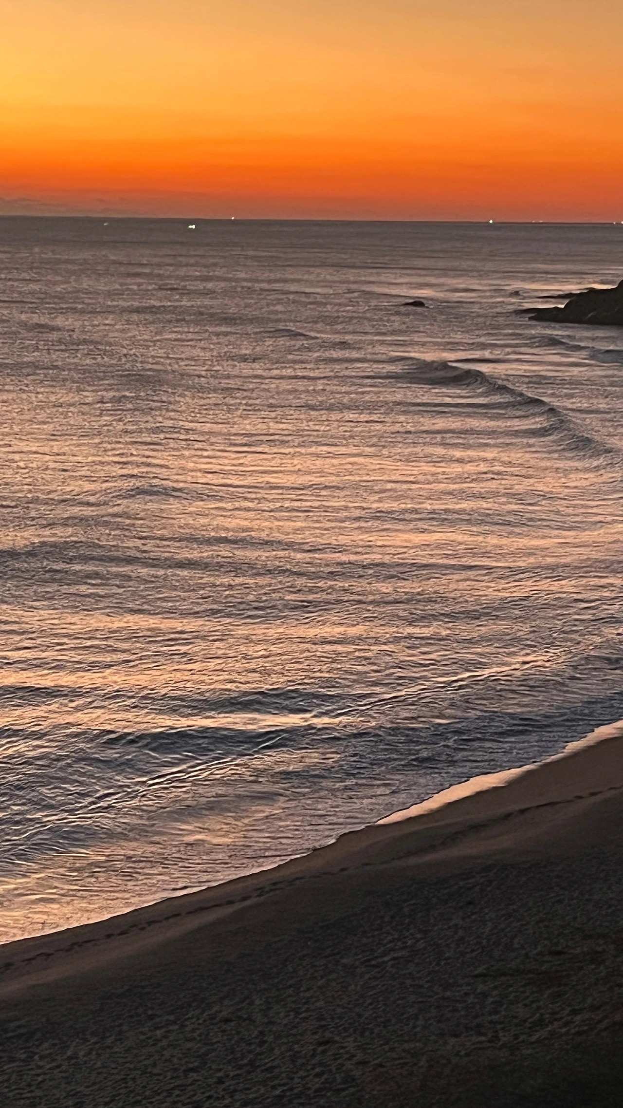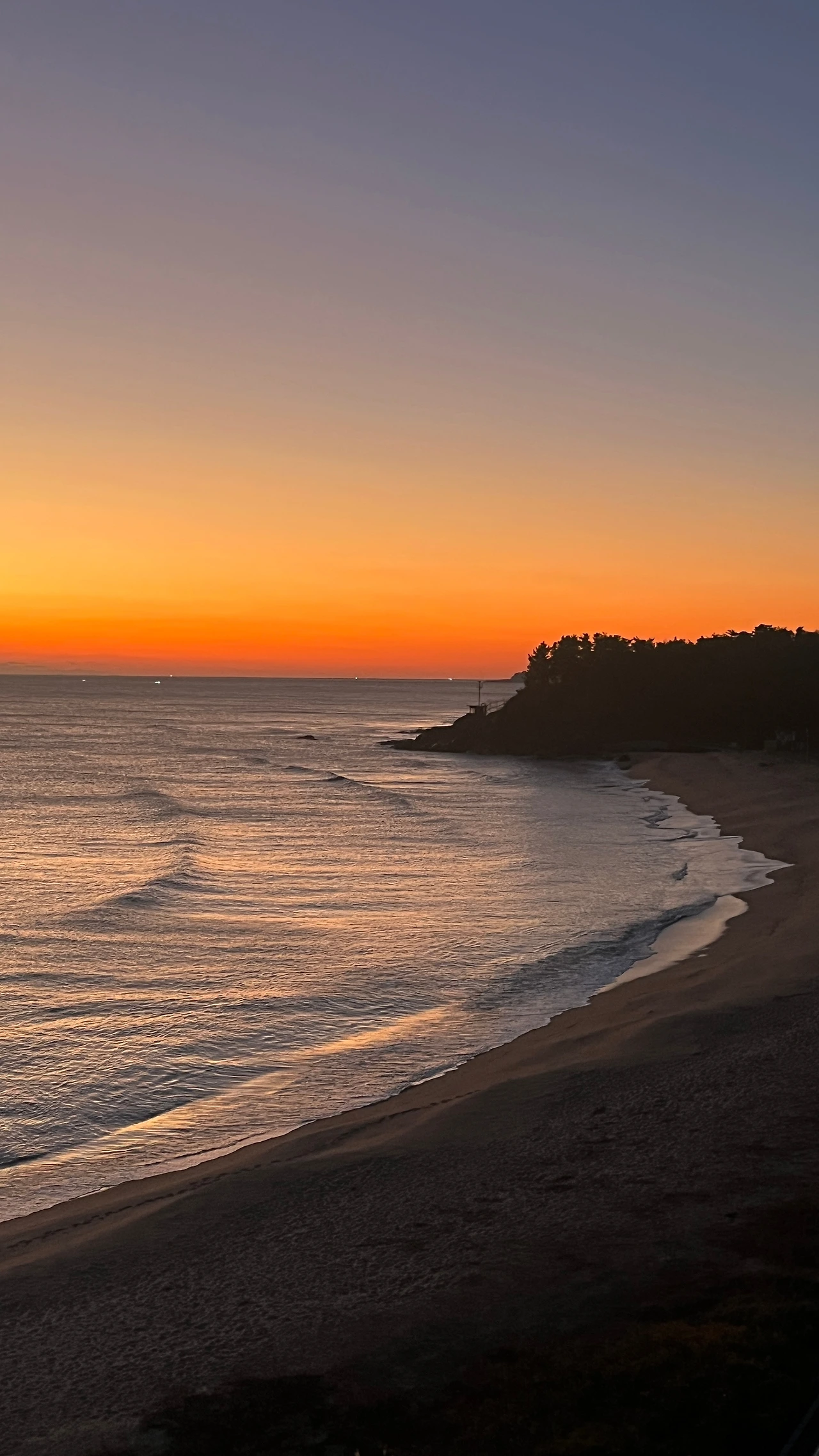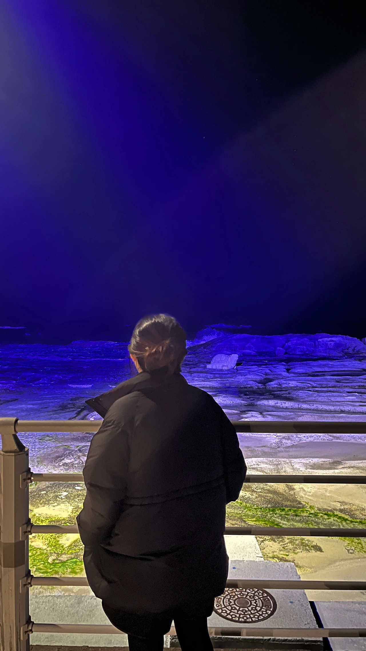 6시 50분쯤, 일하다 고개를 들었는데 창밖에 푸르스름하고 불그스름한 빛들이 수평선 위로 올라오기 시작했다. 후다닥 패딩만 걸쳐 입고 바닷가로 뛰쳐나갔다. 바닷가에서 바라보니 7시가 넘었음에도 내 객실에만 불이 켜져 있었다. 요 몇 번의 방문 동안 해가 보이다 말다 했는데 이번엔 확실하게 둥근 해가 떠올랐다.