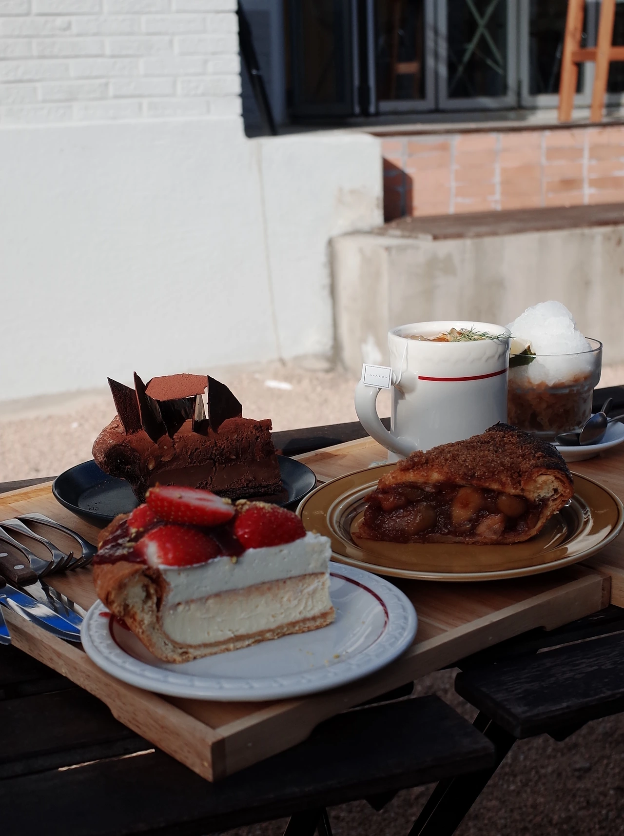 수다를 한참 떨다가 번투드웍스에 갔는데 들어가는 길에 메뉴판에 딸기파이가 있는 것을 보고 카페에 처음으로 들어가 봐야겠다는 생각을 했다. 마침 마당에서 파이를 먹고 있는 팀이 있었는데 시키지 않을 수 없는 비주얼이었다. 방금 카페에서 나왔지만 1인 1파이를 하기로 결정하고 자리를 잡았다. 나는 쇼콜라 파이를, 지아 님은 애플파이를, 세리님은 딸기 파이를 하나씩 골랐다. 파이를 먹어보니 지금까지 번투드웍스를 오면서 이걸 왜 몰랐지, 할 정도로 맛있었다. 멤버들과 있을 때 새롭게 하게 되는 경험에서 되려 배우는 것이 많다고 늘 생각한다.