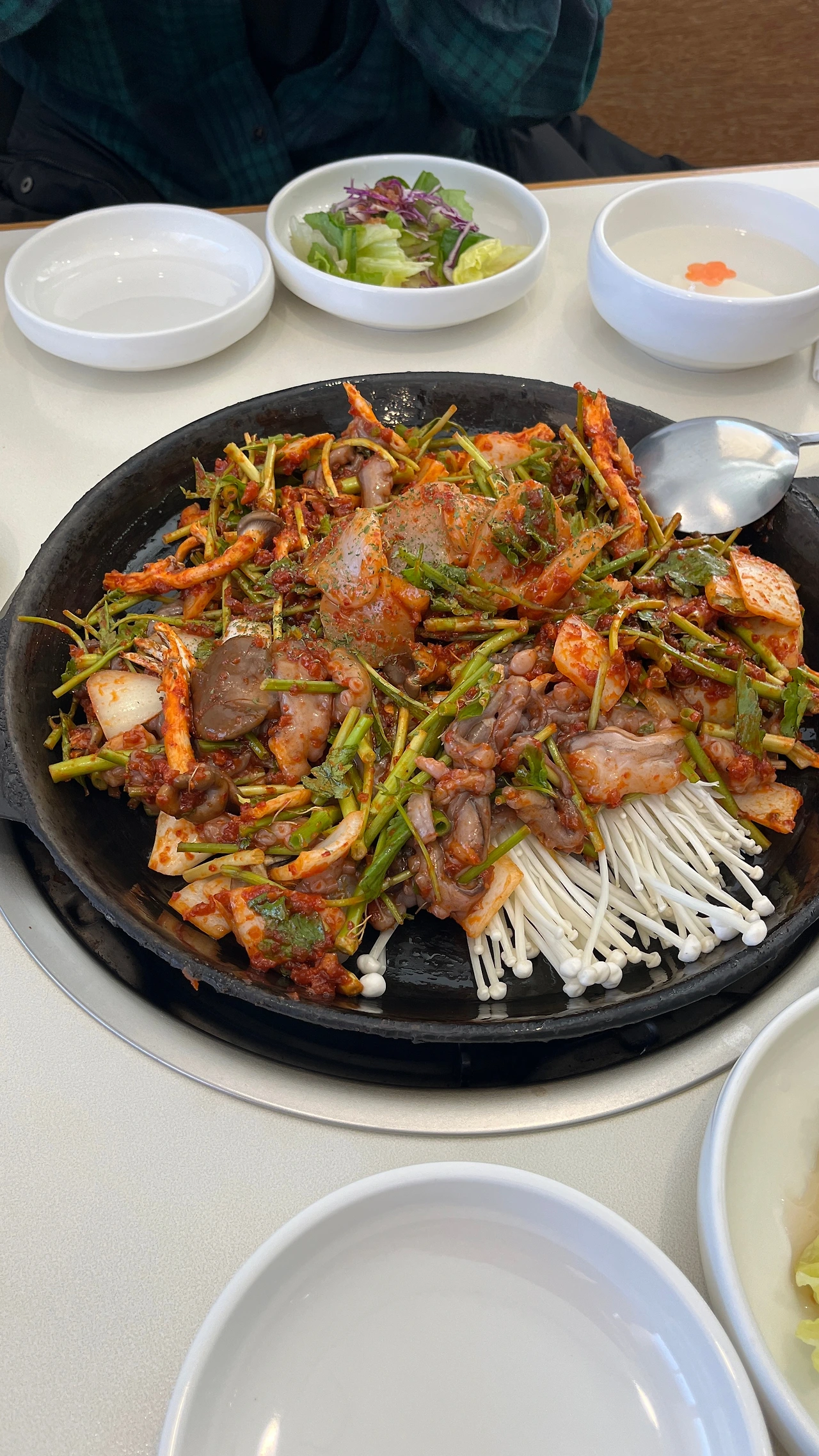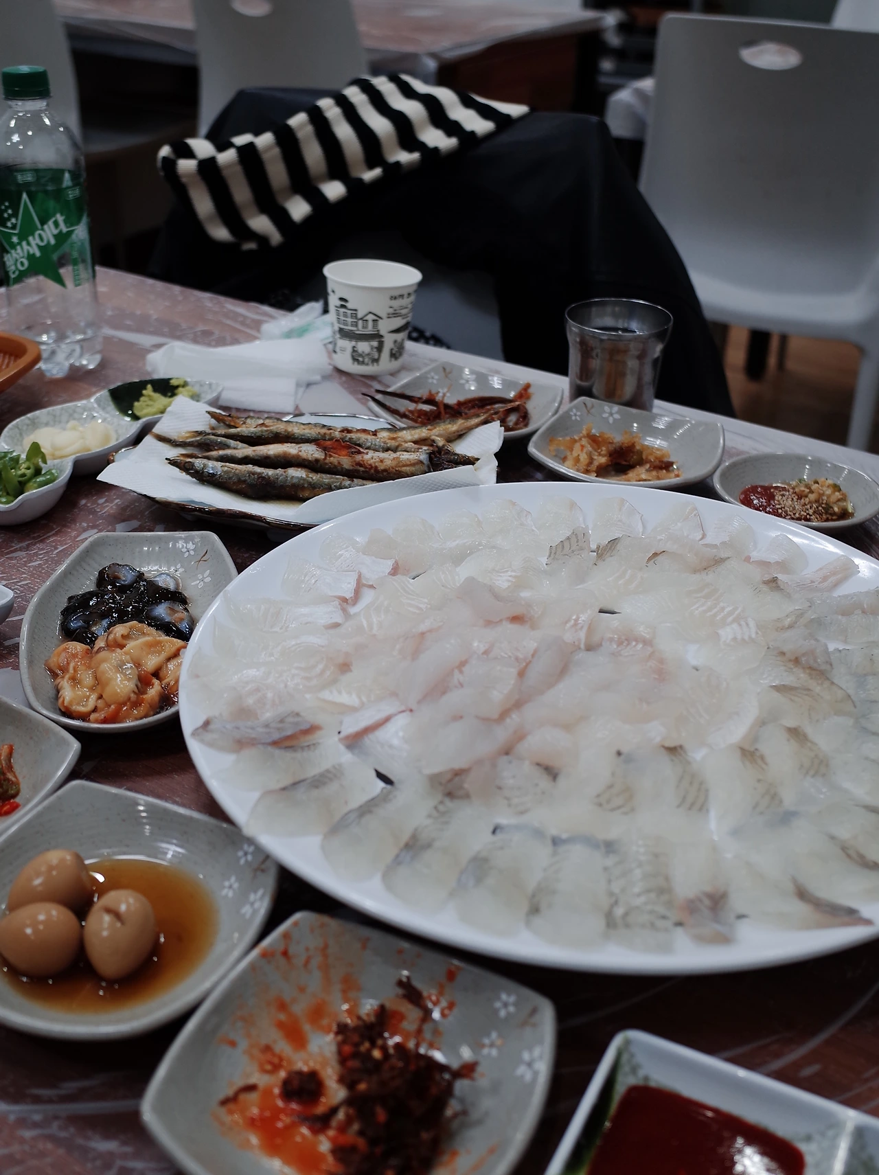 쉬다가 7시쯤에 그래도 뭘 먹어야 하지 않겠냐며 바깥으로 나왔다. 시월에 갔었던 해광호 횟집으로 향했다. 저번에 갔을 때 매운탕, 밑반찬을 먹고 어머님 솜씨가 좋다는 걸 확인했기 때문에 소개할 때 자신 있었다. 처음엔 기억이 안 나더니 자리에 앉아마자 기어코 돌삼치를 기억해 내서 이번에도 돌삼치를 받았다. 돌삼치철이 곧 끝난다고 하셔서 그전에 먹을 수 있음에 감사했다. 저번과 다른 바다 나물들이 자리를 채웠고, 양미리 구이를 3시간에 다시 만났다. 배불러서 더 들어갈 자리가 없을 줄 알았는데, 모둠 회는 물론이고 매운탕도 알차게 다 먹고 마감 시간이 다 되어 나왔다.