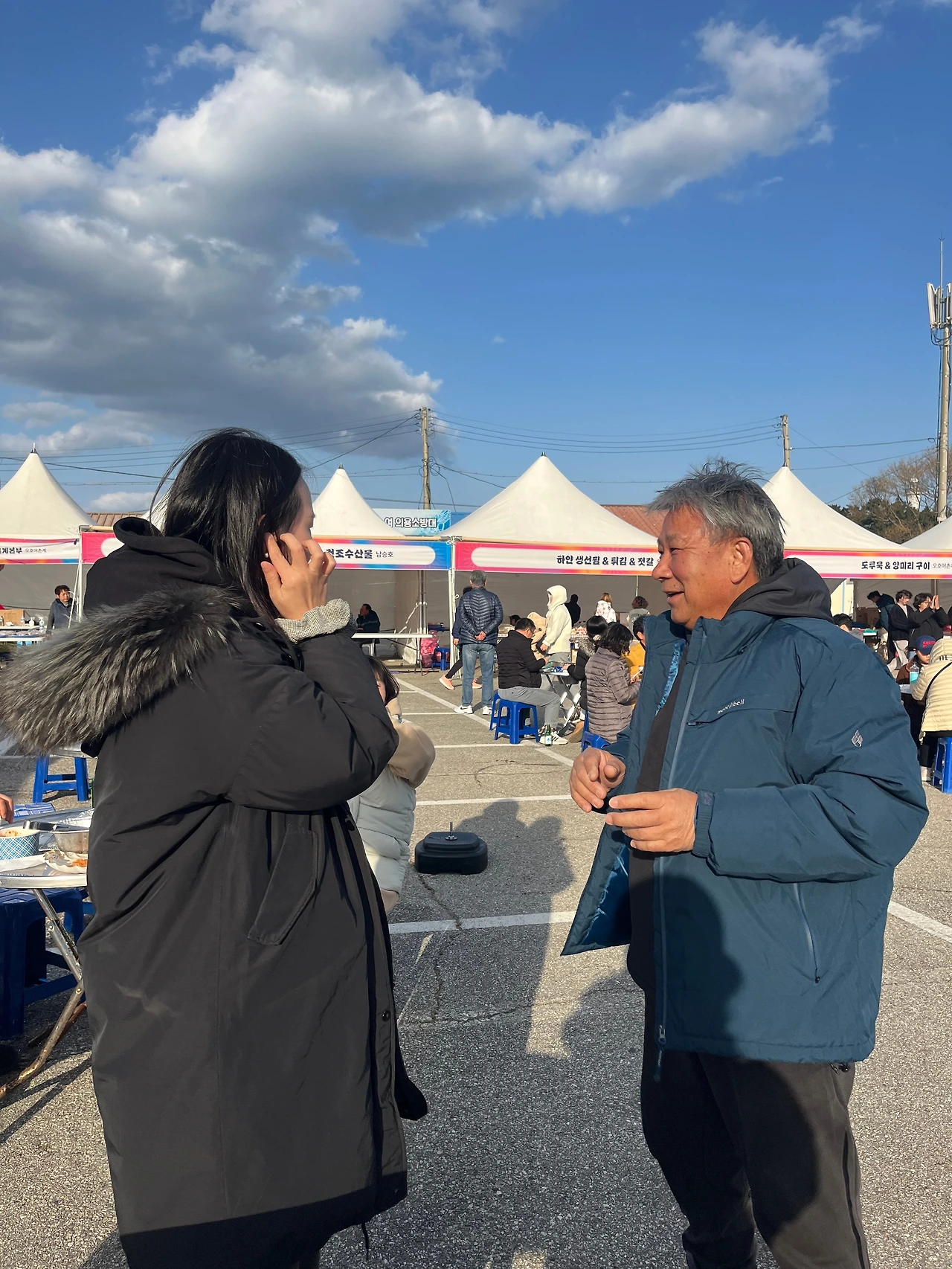 한참을 떠들고 있는데 지아 님이 잠깐 자리를 비운 사이에, 건너편 테이블의 누군가가 나를 정면으로 바라보고 있다는 걸 알았다. 고개를 돌려보니 세상에, 일준 사장님이었다. M을 할 때 메인 제작 공장의 사장님이셨고, 나와 2년 가까이 붙어서 일했던 사장님이셨다. 일준 사장님의 따님인 하연님도 나와 같이 팀으로 일했었다. 출산으로 퇴사하신 이후에도 밖에서 몇 번을 봤는데 나도 퇴사한 이후로는 연락이 뜸했다. 그때도 일준 사장님이 강원도 어디론가 가실 거란 걸 알고 있었는데 그게 지금 생각해 보니 고성이었던 것 같다. 사장님을 얼싸안고 잘 지내셨냐며 폴짝 뛰면서 어떻게 여기에 계시냐고 반갑게 인사했다. 사실 그 이야기는 내가 일준 사장님한테 들었어야 하는 소리였다. 듣고 보니 일준 사장님이 정착한 곳이 바로 오호리 어촌계였고, 사장님은 지금 집 근처 마을 잔치에 온 셈이었다. 그런데 거기 내가 그것도 하필 바로 옆 테이블에 앉아있었으니, 사장님이 사실 나보다 더 놀라셨을 것이다. 서울에 있어야 하는 사람이 여기 있었으니.