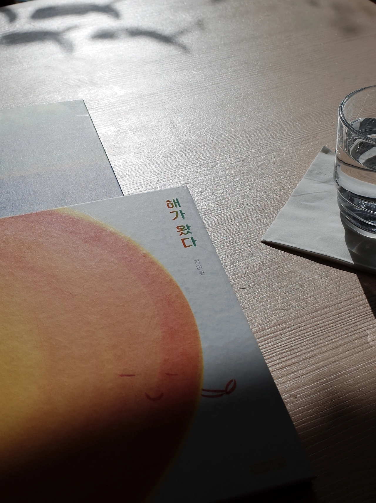 전날에 이미 일출항해가 어려울 것이라는 소식을 들은 뒤였기에, 이 날 아침 일출은 천학정에 가서 보기로 했다. 6시 40분에 나와서 천학정으로 향했다. 왠지 해가 예쁘게 잘 뜰 것 같아서 재빨리 두 분을 모시고 다시 숙소 앞바다로 돌아왔다. 일출을 보면서 따로 챙겨 온 그림책을 보면 딱일 것이라고 생각했다. 돗자리는 없었지만 요가매트가 있어서 2개를 겹쳐 깔고 셋이 나란히 앉았다. 지아 님과 세리님을 떠올리며 추렸던 '작지만 강한 / 감각적이고 아름다운 / 겨울과 음식을 주제로 한' 3가지 테마의 그림책 6권을 깔아 두고 번갈아 가며 읽었다.