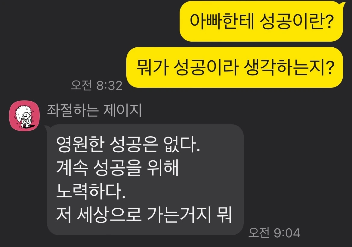 이 날부터 ‘성공’의 의미를 나에게, 그리고 주변인에게 묻기 시작했다.