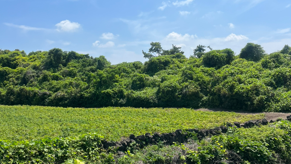 현무암 덕분인 것 같다. 푸르기만 한 프레임에 걸린