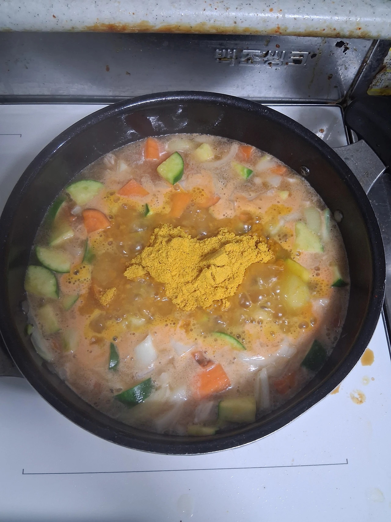 오늘은 2주 전에 만든 카레가루와 야채 등으로 만드는 직접 조리해 먹는 카레를 만들어봤다 (처음 만든 건 아니지만 꽤 어렵지는 않다)