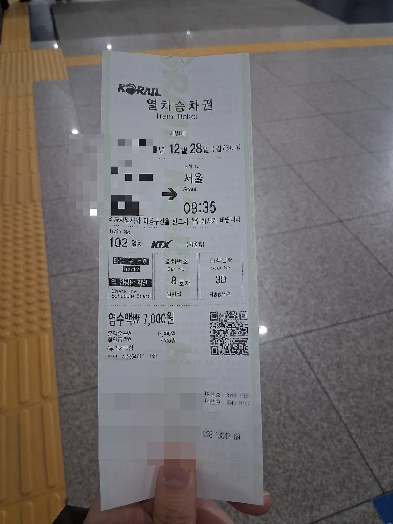 KTX를 타는 기차역까지 택시를 타고 왔습니다! 이 승차권은 페스티벌 일주일 전에 공지해서 페스티벌 공지해 주고서 승차권을 발권했어요!