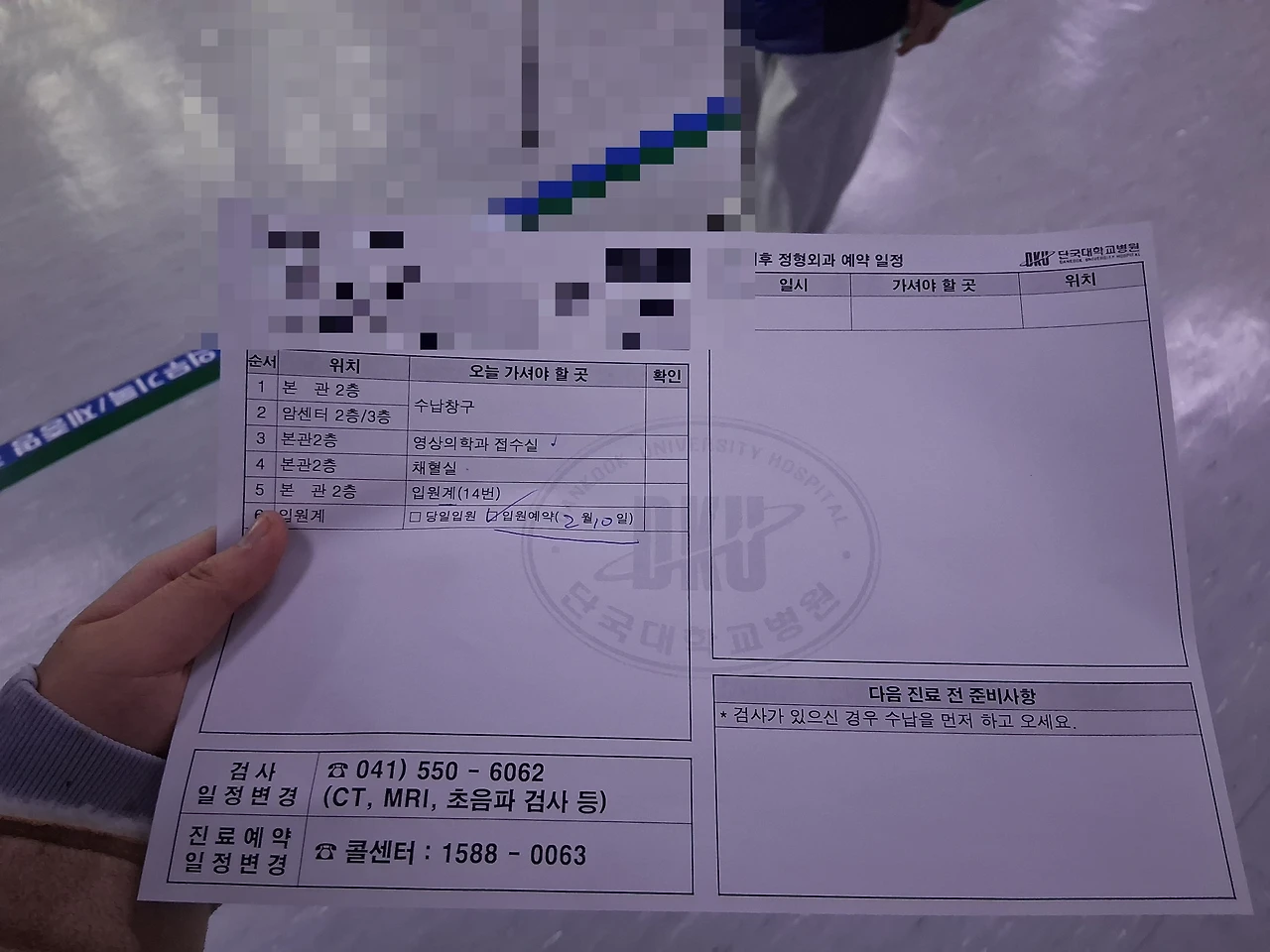 사실 검사다하고 입원계가서 (입원 예약을하고 집에가면 된다)