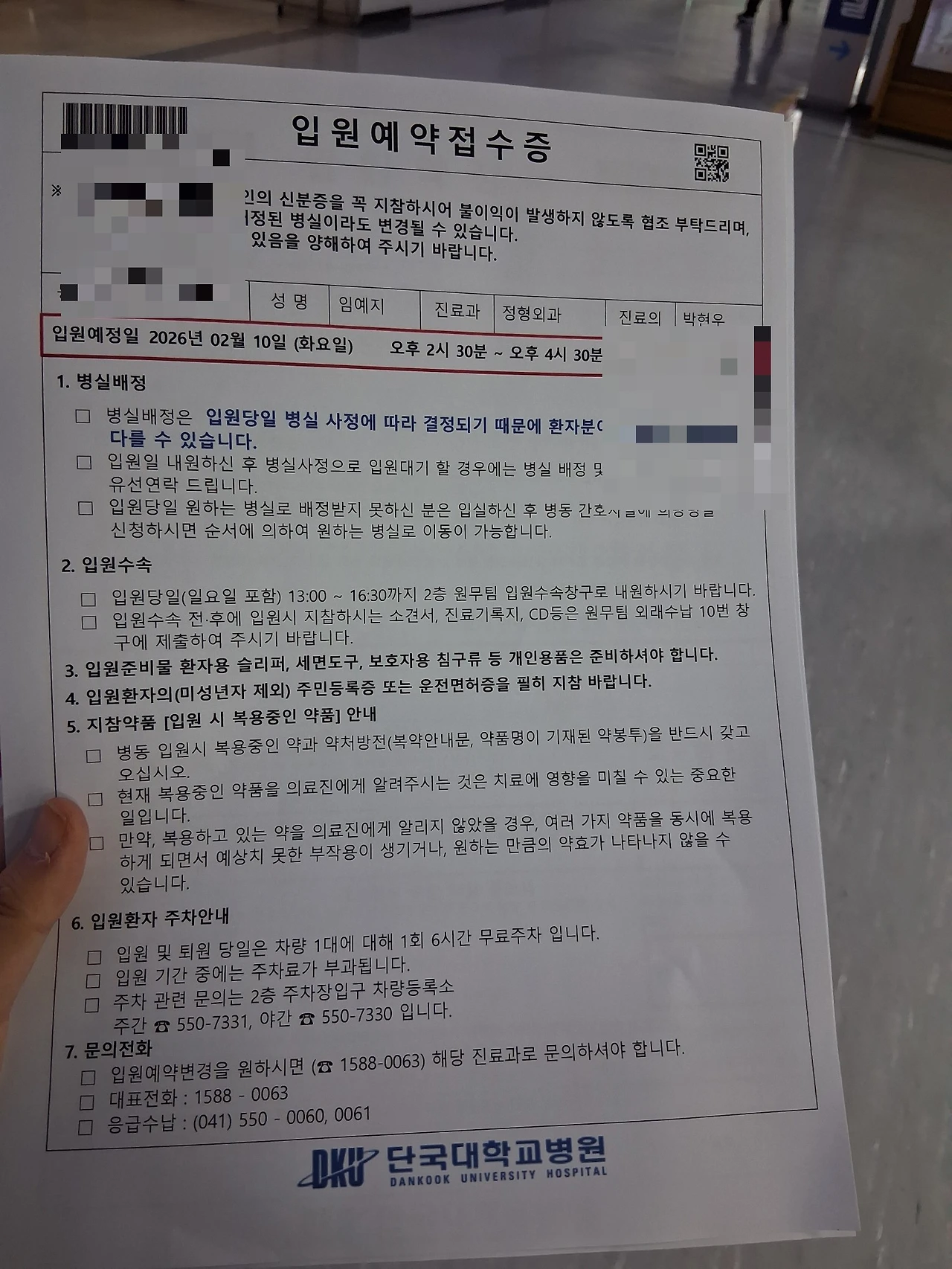 입원은 2월 10일 오후 2시에서 4시다 입원 2일전검사하고 2틀뒤에 수술하고 14일에 퇴원을 하는 4박5일의 입원이다!!