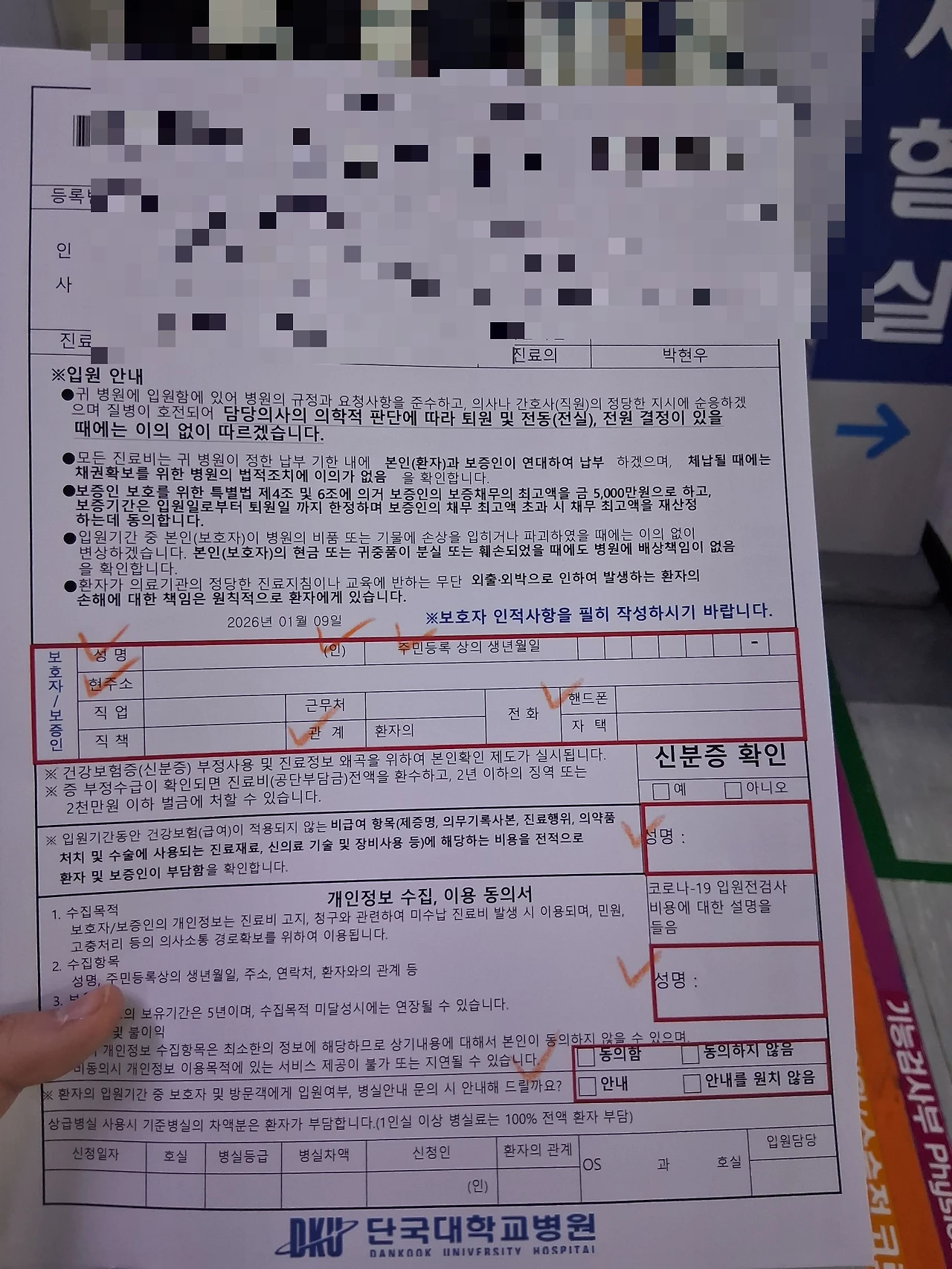 2026년 1월 9일 회사에(병가) 4시간을 내고서 다녀옴(일단 4시간 먼저쓰고 추가로 4시간을 더 사용하였다)
