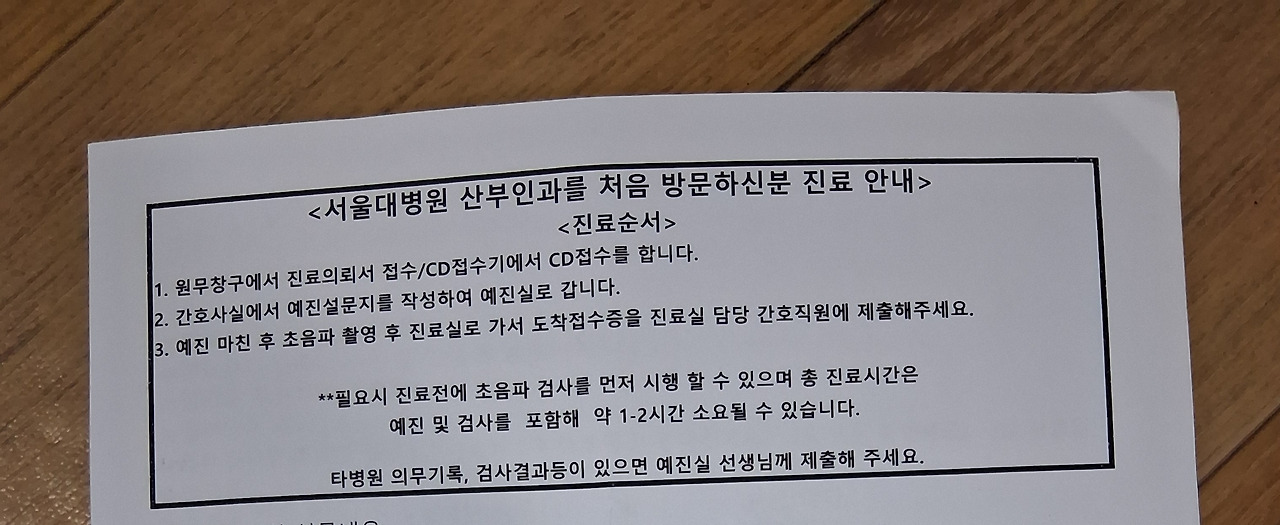 이번주 수요일 1월 28일은 서울대학교병원 산부인과에 1년동안 생리를 하지않아서 , 동네 산부인과병원에서는 이렇다 하는게 원인을 딱히 찾지못해서 지역 내 대학병원은 무월경쪽으로 진료를 보는 의사가없어서 경국 서울대병원으로 가게돠었다