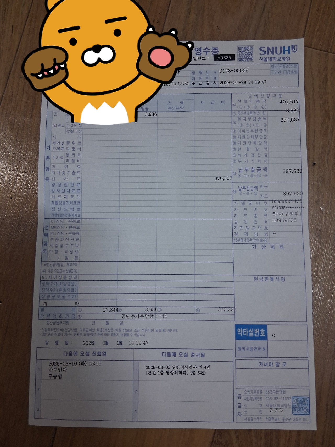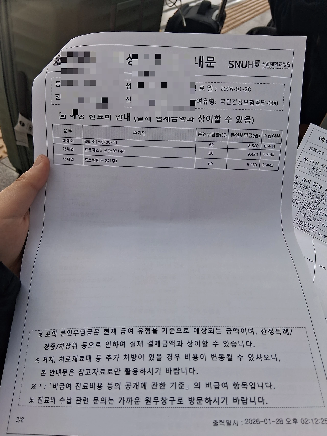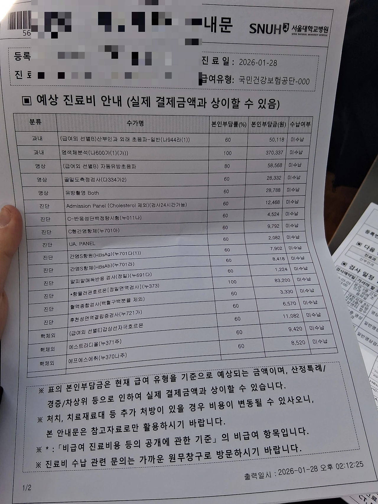 이것은 앞으로 내가할 검사비용과 목록 ㅠㅠ