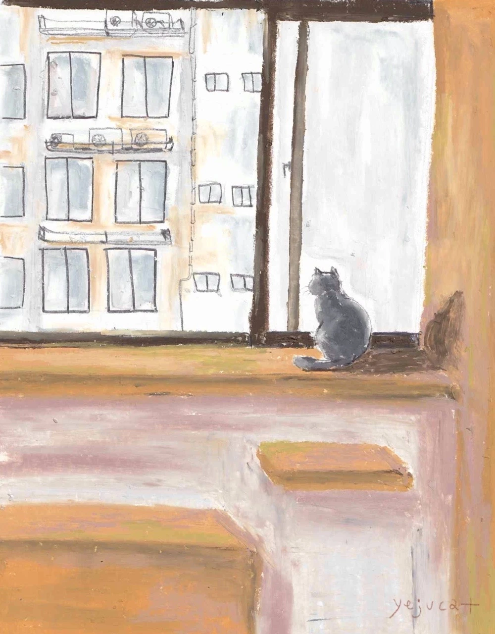 잠든 고양이의 이마에 입 맞춘 적이 있어요.