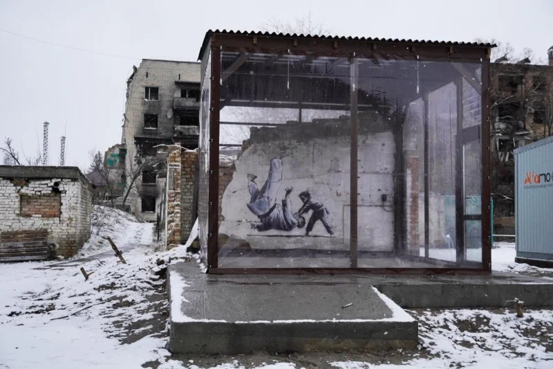 뱅크시의 가장 최근의 행보는 전쟁 속에서 발견된다. 2022년 러시아의 침공으로부터 벌써 1년간 전쟁이 지속되고 있는 우크라이나의 도시들 곳곳에 뱅크시의 낙서들이 하나둘 생겨나기 시작했으며 그 개수는 지금도 늘어가고 있다. 낙서들은 최근 몇 년간 우크라이나 사람들이 직면하고 있는 갈등들을 그려낸다. 키예프 군사청 측에서는 “빛이 어둠을 이긴다는 것을 알려주는 문화”라며 뱅크시의 작품이 발견되는 족족 최신 기술을 동원해 보호막을 설치하기 시작했다. 심지어 우크라이나 정부는 평화를 염원하는 마음에서 뱅크시의 벽화를 공식 우표로 제작하기도 했다. 이것이 놀라운 이유는 바로 우크라이나의 벽화에 대한 엄격한 법을 거스르는 행위이기 때문인데, 2015년 우크라이나 측은 정부에 대한 선동행위를 막기 위해 허가받지 않은 낙서를 법적으로 금지하였고, 이후 정부는 줄곧 벽화를 그리다 적발된 사람들을에게 벌금과 징역형을 부과해 왔다. 부동산 소유자들로 인해 작품이 제거되는 것 또한 당연한 일이었다.
