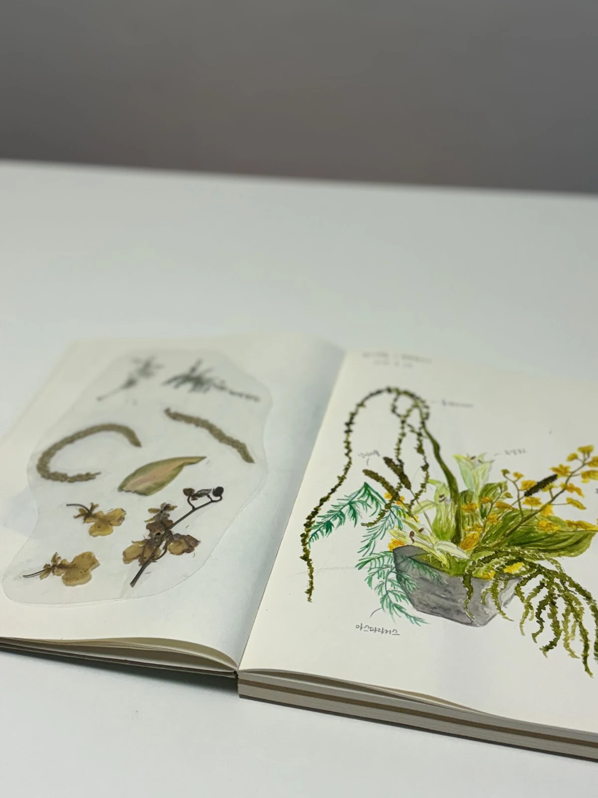 중간에 디자인도 한번 갈아엎고 몇 번의 수정을 하고도 여전히 만족하지 못하고 있던 찰나, 살구쌤의 조언에 따라 정말 꽃 머리 하나를 오히려 제거하니 작품이 전체적으로 시원해지고 답답했던 부분이 해소되었다. 이전 같았으면 소재 하나를 딱 하나 추가하면 전체적인 작품이 살았던 것에 반면, 비워내는 것에 정답이 있는 게 신기했다.