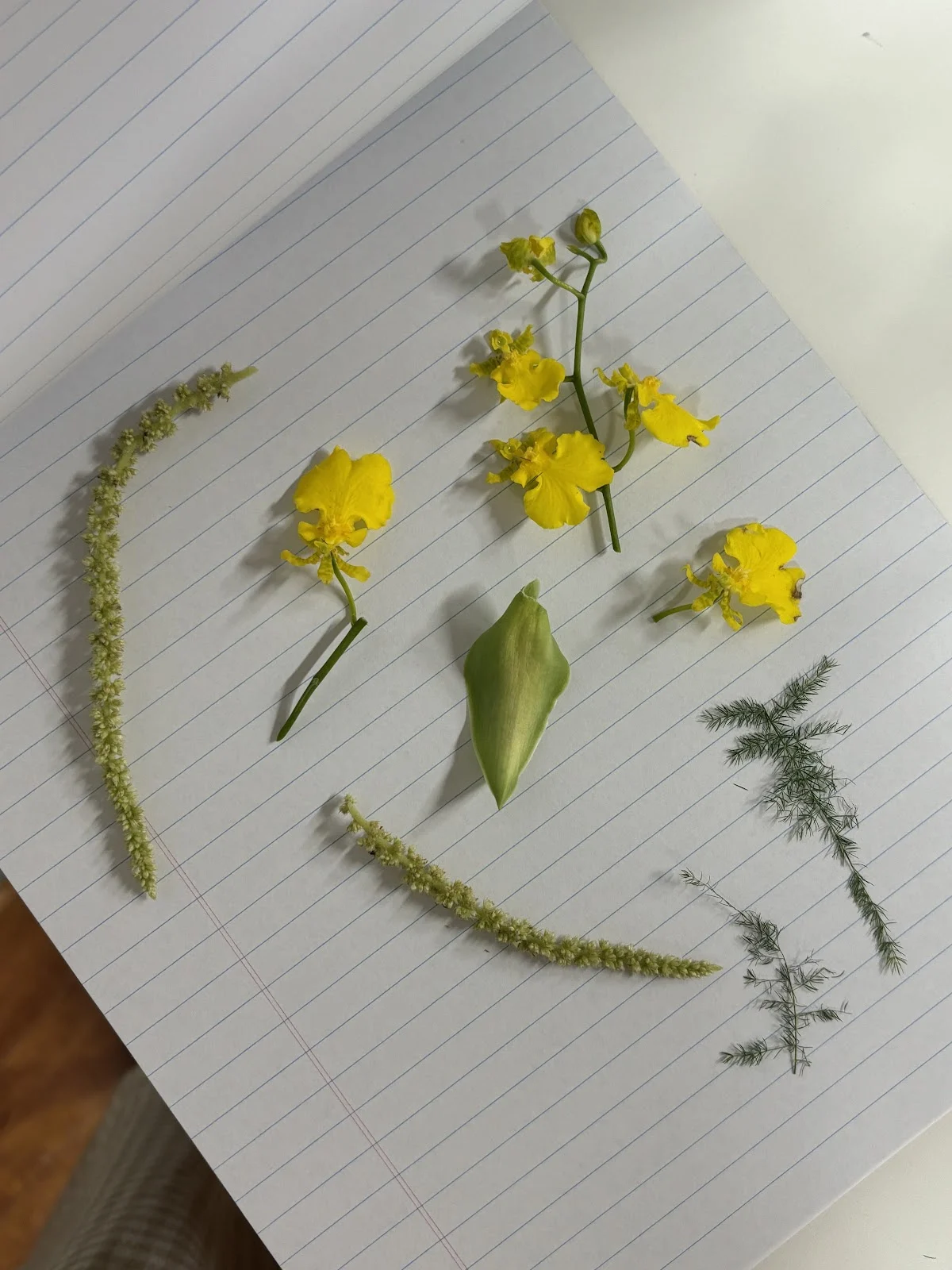 옥잠화, 줄맨드라미, 아스파라거스, 강아지풀, 온시디움