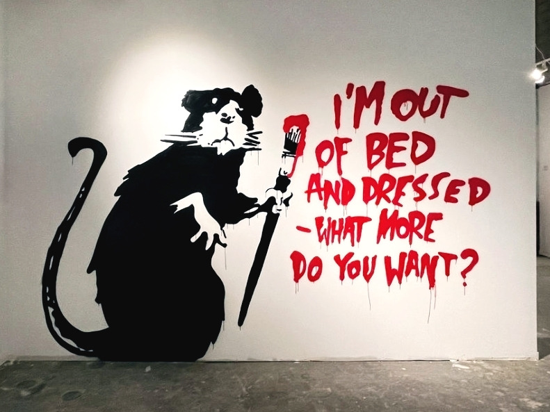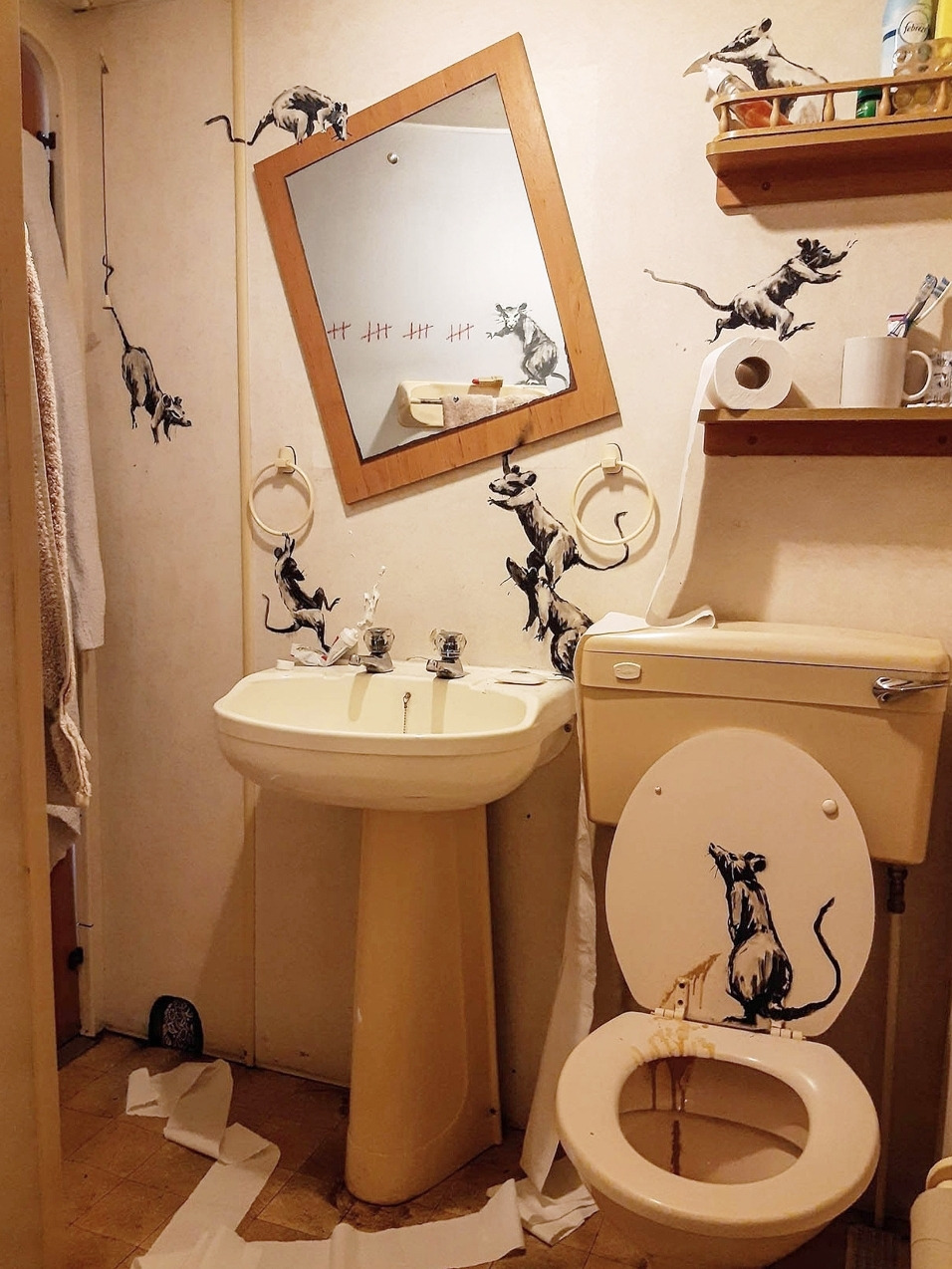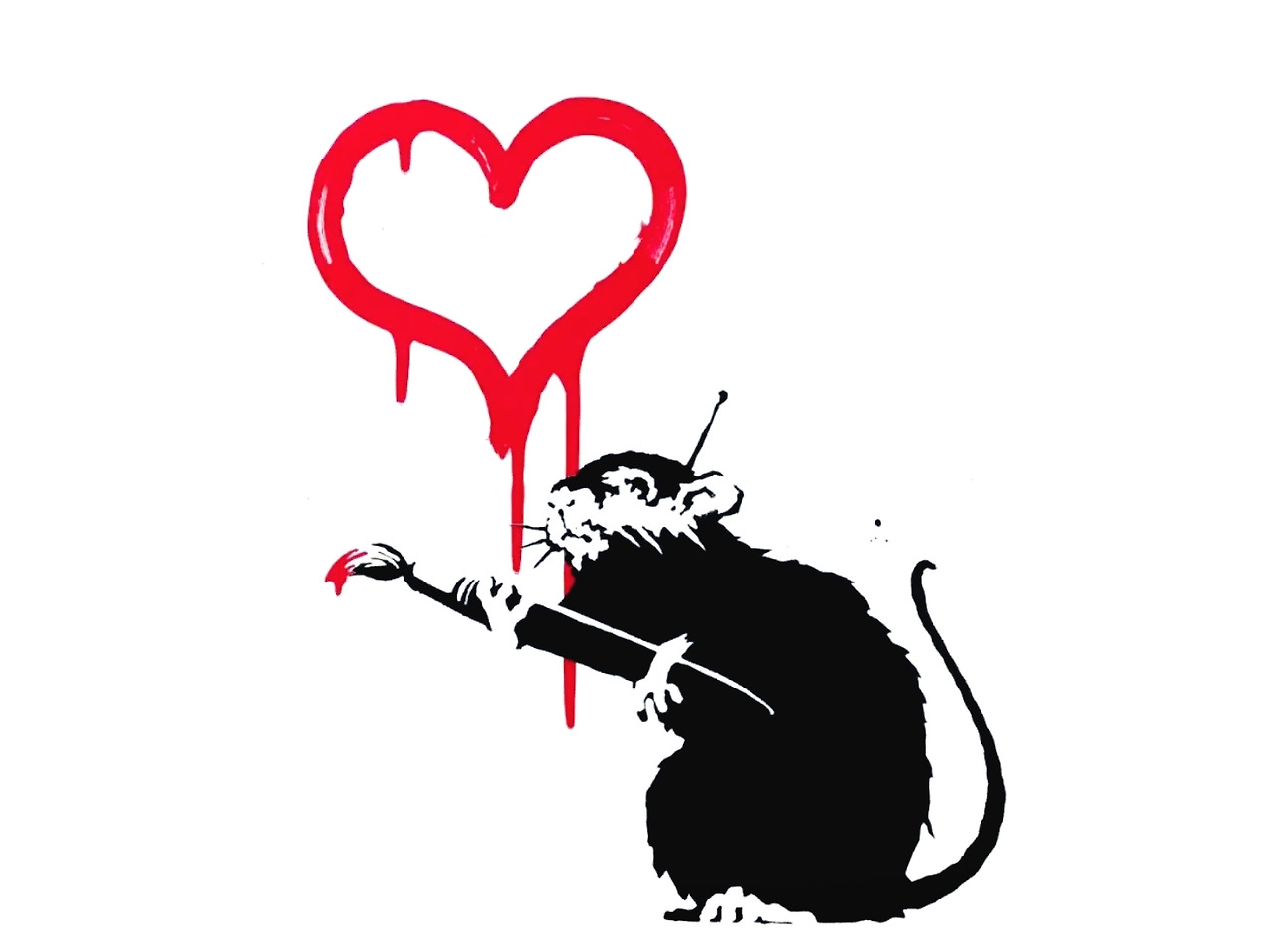 그가 작품에 자주 사용하는 캐릭터인 쥐. 현대 대중문화예술의 중심에 있는 디즈니의 상징 미키마우스를 비꼬는 것이라는 말도 있지만, 예술과 미술을 의미하는 영문 ‘ART’에 관한 애너그램으로 ‘RAT’을 이용하여 미술계를 비판하는 것이란 해석이 적어도 필자에겐 더 의미 있게 와닿는다. 바다에 살면서 바다를 벗어나고픈 고래와 같은 뱅크시, 앞으로 더 많은 작품을 남기며 끝까지 자신을 숨기길 응원한다.