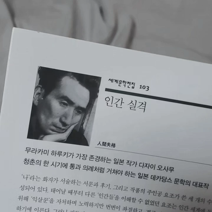 민음사 세계문학전집 '인간 실격' 뒤표지의 소개 글에 이런 글귀가 있다. '청춘의 한 시기에 통과 의례처럼 거쳐야 하는 일본 데카당스 문학의 대표작' 청춘과 데카당스, 때려야 땔 수 없는 단어이지 않은가! 보들레르, 랭보, 오스카 와일드. 이름만 나열해도 웅장이 가슴해지는 이들로부터 시작된 탐미주의와 상징주의 등의 사조가 다자이 오사무에게까지 이어진 듯싶다.