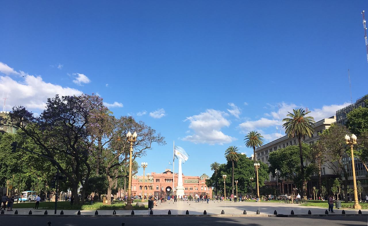 구글 맵을 손에 쥐고도 갈팡질팡하다 먼저 카사 로사다에 닿았다. 핑크빛 대통령궁. 여기는 화잍 하우스도, 블루 하우스도 아닌 핑크 하우스네. 핑크 하우스 앞 광장과 잔디에서 사람들이 모여 각자 쉬고, 놀고 있었다. 햇볕이 좋았고, 하늘도 좋았다. 미세먼지는 1도 없었다. 좋은 공기, 부에노스 아이레스(Buenos Aires)였다.