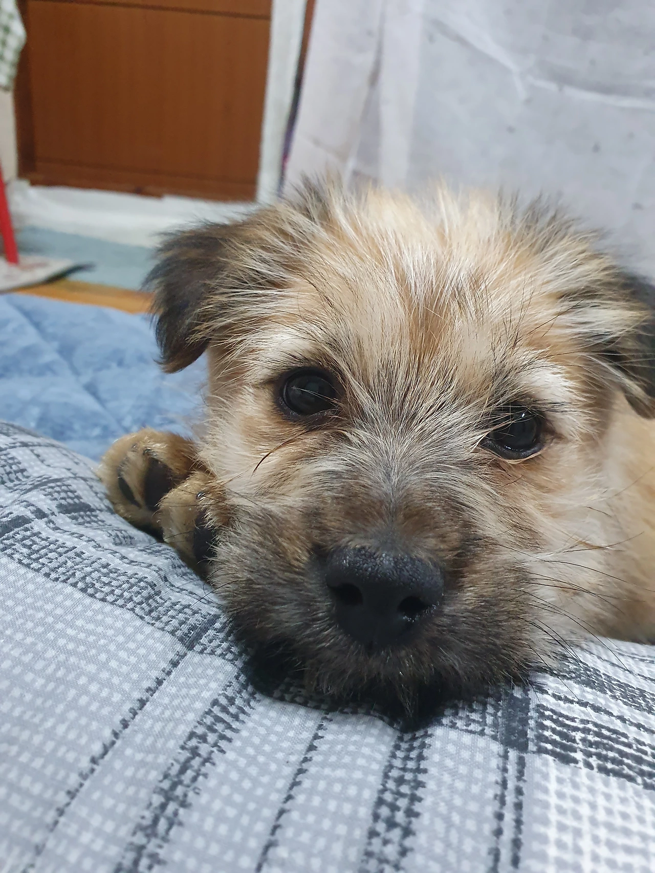 그렇게 4개월을 또 견디다가 웬 낯선 이들이 너를 데리러 가려고 하니 공포에 오줌을 질질 싸며 울어 젖혔지. 어미 견의 불안한 눈빛과 너의 겁에 질려 뒤로 넘어갈 듯한 모습에 그 낯선 이는 짜증을 내었지.
