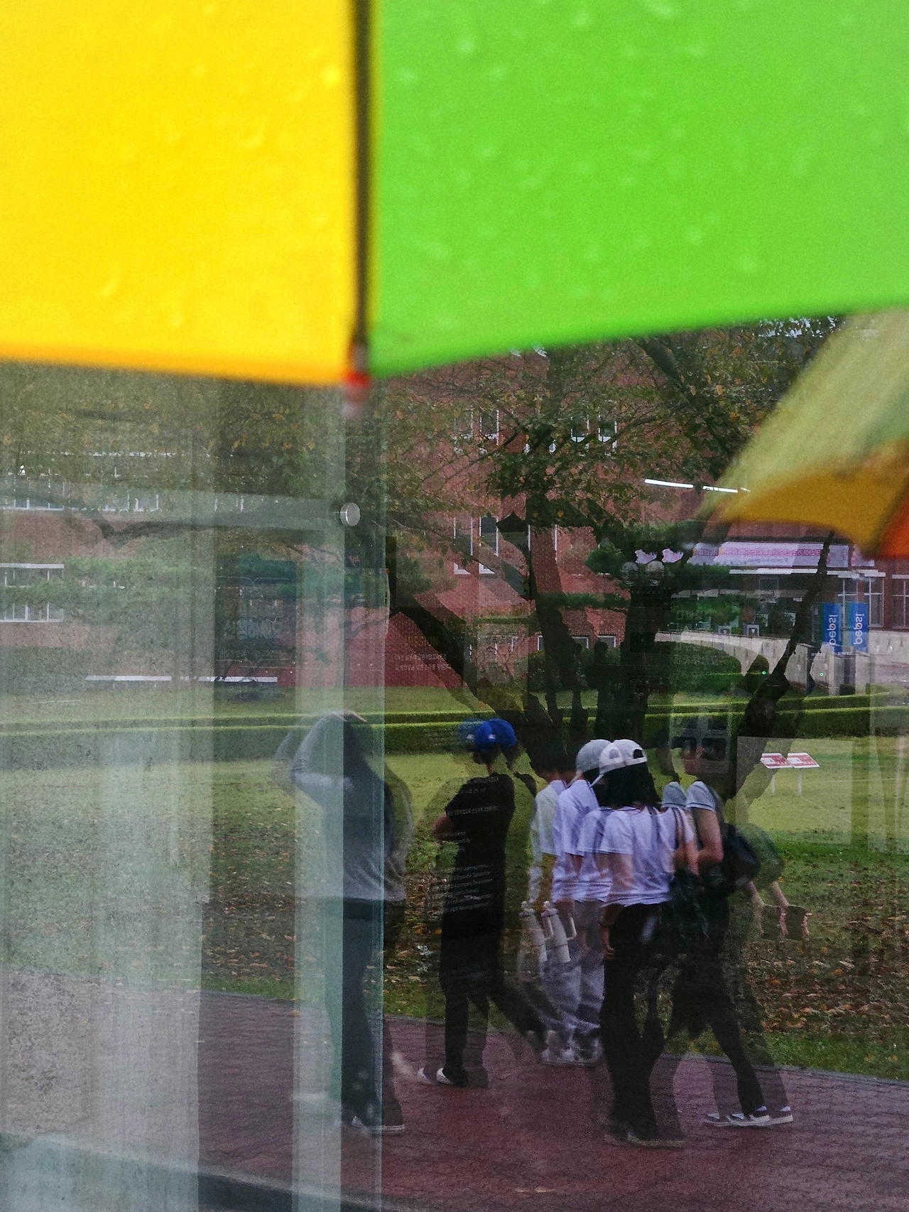 빗줄기 한복판을 가로지르는 웃음소리.