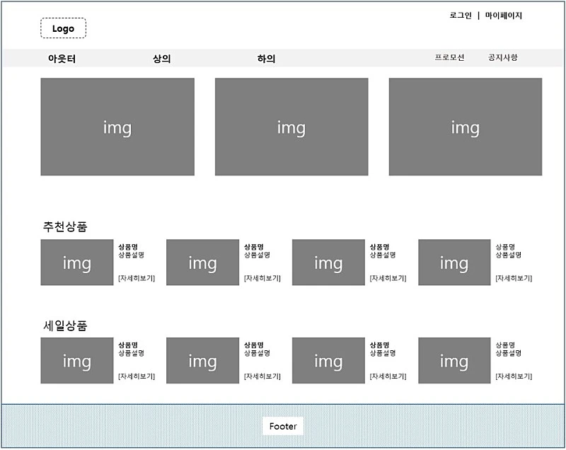 위의 구조를 바탕으로 홈 화면을 그리면 대략 아래와 같인 그림이 될 것 같습니다.
