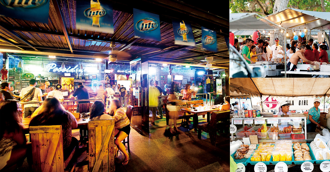 해가 지고 저녁식사가 끝날 무렵이면 많은 현지인과 여행객들이 가라판으로 모여든다. 가라판은 사이판의 다운타운이다. 섬 최대이자 유일한 번화가인 이곳엔 여행자를 위한 레스토랑과 바, 클럽이 밀집해 있고, 사이판 최대의 면세점인 T갤러리아와 생필품에서 기념품까지 판매하는 ABC마트도 찾아볼 수 있다. 바와 클럽은 서울의 그것처럼 화려하고 세련된 분위기는 결코 아니지만 소박하면서도 왁자지껄한 현지 밤문화를 엿보는 것만으로 충분히 즐겁다. 라이브 공연과 포켓볼, 다트 등을 즐기고 술잔을 기울이며 섬에서의 하루를 마무리하기에 좋다.