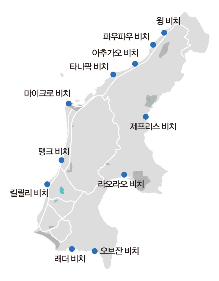 사이판 최북단에 자리한 해변. 마리아나 리조트 & 스파 북쪽으로 펼쳐진 이곳은 백사장부터 걸어 들어가는 비치 다이빙을 즐기기에 좋다.