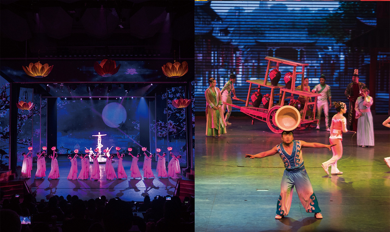 항저우를 대표하는 공연은 ‘송성가무쇼’와 ‘서호의 밤’이다. 그중 ‘서호의 밤’은 시후(西湖)에 전해 내려오는 전설과 송나라 민족 영웅의 이야기로 꾸민 가무극으로 화려한 조명과 배우들의 분장, 현란한 몸동작이 일품이다.
