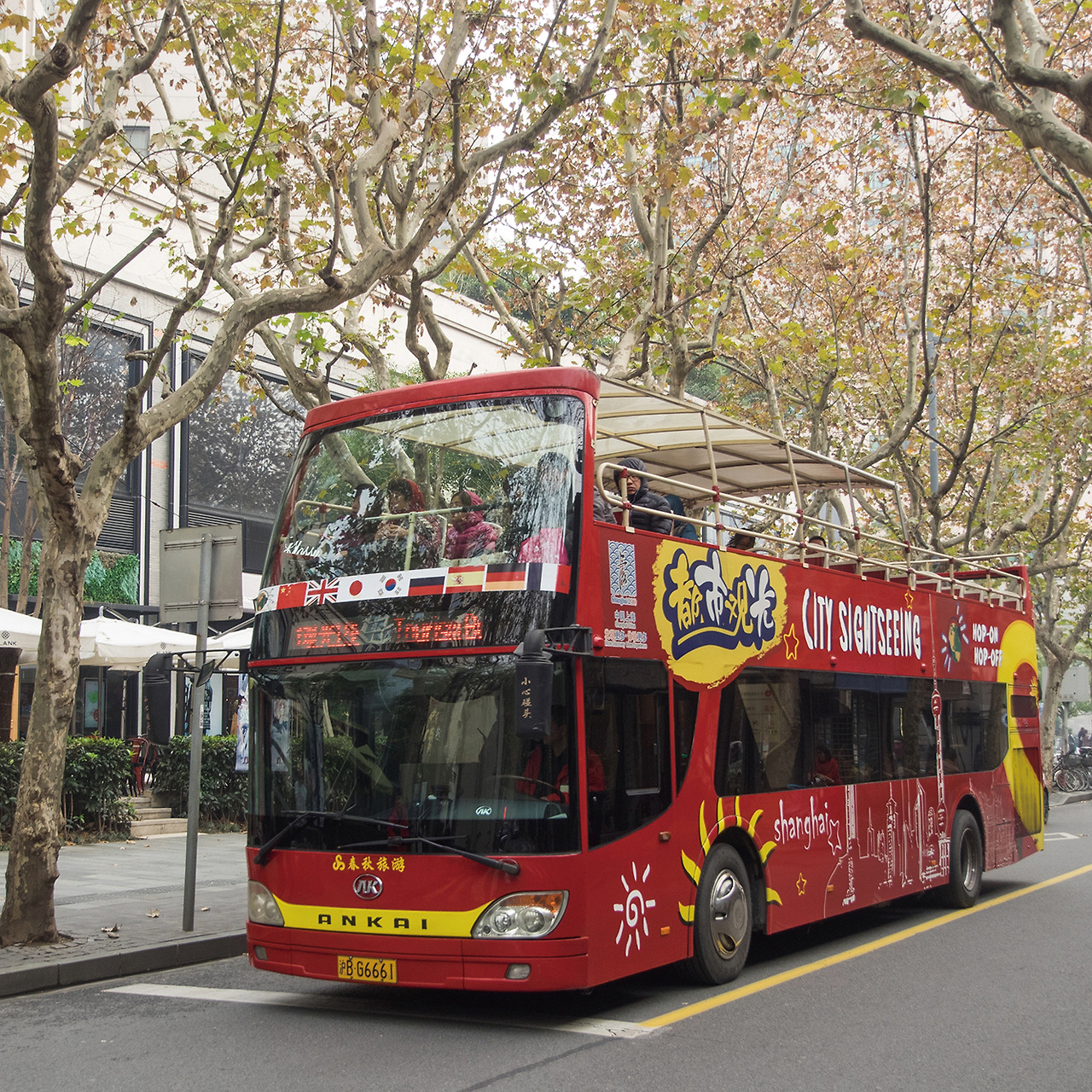 상하이 2층 시티투어 버스를 이용하면 인민광장, 상하이미술관, 난징루, 와이탄, 황푸강 유람선 선착장, 위위안, 상하이 옛 거리, 신티엔디 등을 두루 돌아볼 수 있다.
