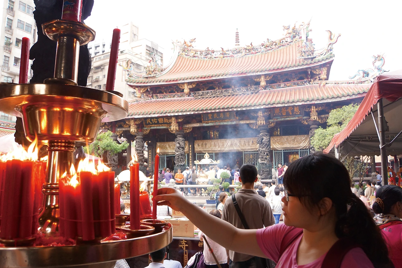 많은 여행자들이 맛있는 음식을 찾아 타이베이를 방문한다. 달콤한 망고빙수에서 육즙 풍부한 샤오롱바오까지 저렴하고 맛있는 먹거리로 가득한 곳이 바로 타이베이다. 하지만 음식만으로는 왠지 허전하다는 생각이 든다면 사원을 찾아가 보자. 타이베이에는 크고 작은 수많은 사원이 곳곳에 자리한다. 용산사는 타이베이의 사원 중에서 가장 오래되고, 가장 유명하며, 가장 전형적인 타이완 사원이다. 불교, 도교, 유교의 중요한 신을 모신 종합사찰로 늘 참배객의 향불이 끊이지 않는다. 중국식 고전 건축인 3진 4합 방식의 궁전식 건축으로 벽면에는 생동감 넘치는 도상이 그려져 있고 석조는 매우 정밀하며 기둥과 처마의 경계 부분에 못을 쓰지 않은 전통양식으로 되어 있다. 지붕의 사방에는 용, 봉황, 기린 조형이 있으며 채색 유리와 기와로 장식되어 있다. 1738년에 건립되었고 1757년 새로 지어 오늘에 이른다. 국가 2급 고적이기도 하다.