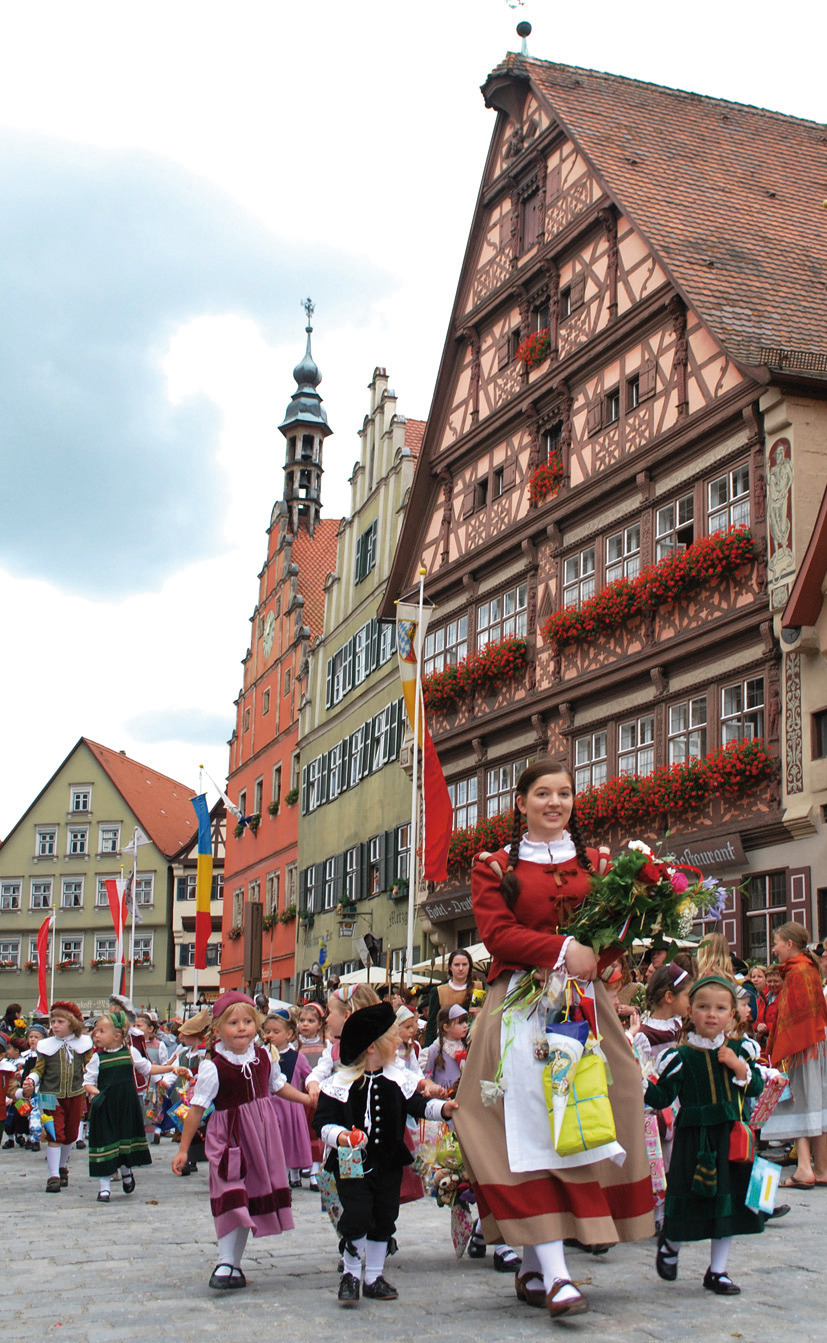 전형적인 중세 독일 마을을 그대로 보여 주는 도시다. 세계대전의 피해를 입지 않았기 때문이기도 하지만 지금까지도 딩켈스뷜 사람들은 오직 천연색으로만 집을 칠하고 간판 글씨체는 로만고딕체로, 창문은 오직 두 가지 색상만 사용한다는 규제를 스스로 만들어 잘 지켜온 까닭에 도시의 원형이 그대로 보존될 수 있었다. 관광객으로 북적이는 로텐부르크의 화려함이 부담스러운 여행자라면 독일인의 평범한 일상이 있는 딩켈스뷜이 마음에 들 것이다.