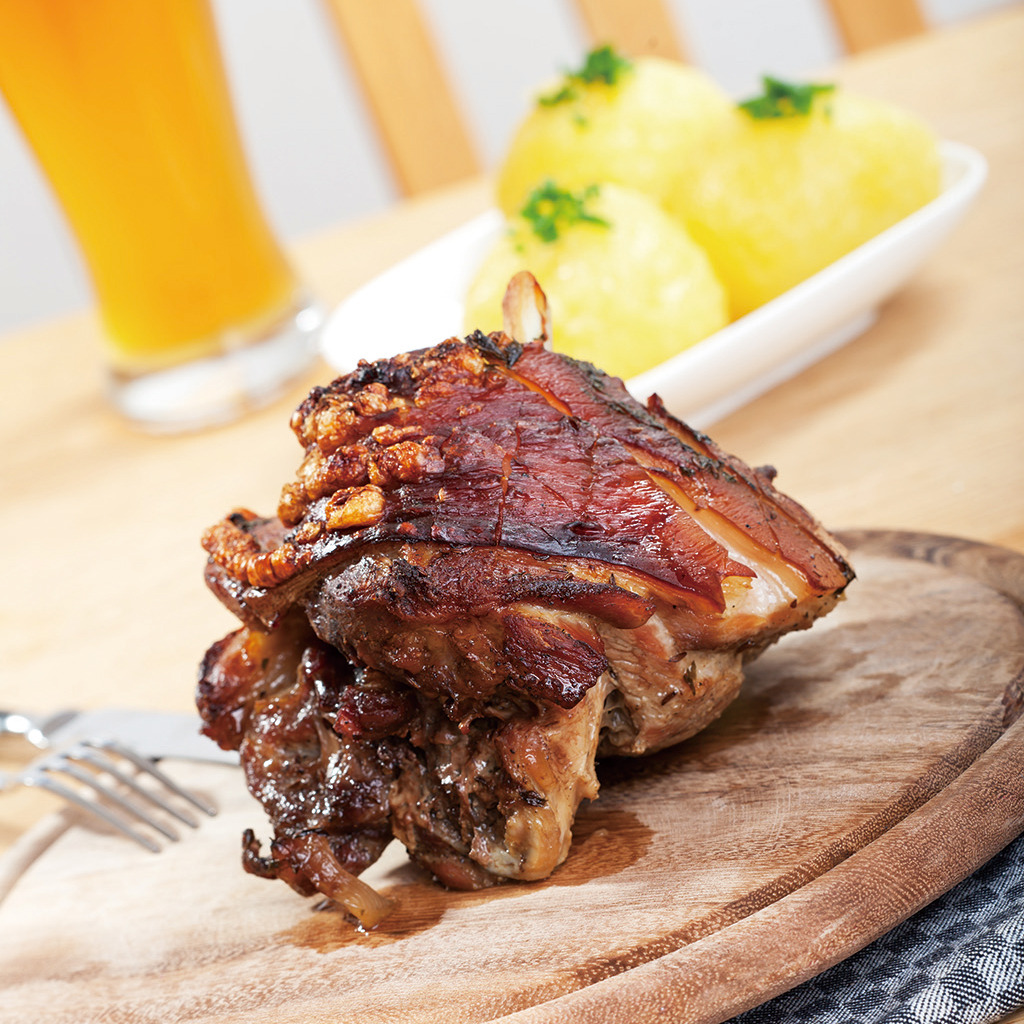 대표적인 독일 돼지고기 요리로 맥주와의 궁합이 아주 좋아 맥주축제 등에 빠지지 않는 메뉴다. ‘독일식 족발’이라는 별명도 있는데 엄밀히 말하면 돼지 ‘발’이 아닌 ‘다리’로 만든다. 독일식 김치라고 할 수 있는 양배추절임 자우어크라우트 (Sauerkraut)와 으깬 감자 등을 곁들여 먹는다.