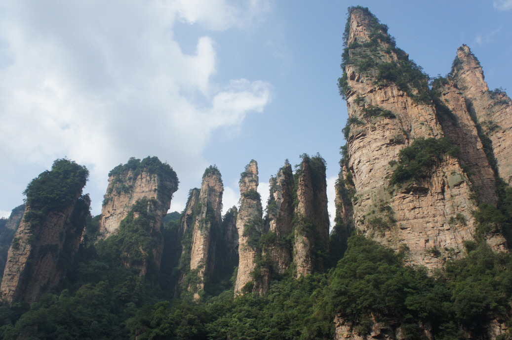 수묵산수화 속에서 금방 튀어나온 듯한 기묘한 절경으로 수많은 관광객을 불러모으는 장가계는 중국 남부 지역인 후난성 북서부에 자리한다. 후난성 바로 아래가 광둥성이고 홍콩과 마카오가 그 끝에 있다. 장가계는 크게 장가계 시의 국가삼림공원, 츠리현의 삭계곡 풍경구, 쌍즈현의 천자산 풍경구 등 3개 풍경구로 이루어진다. 이들은 모두 인접해 있어 산책로로 연결이 되며, 전체를 모두 둘러보려면 최소한 4~5일이 걸릴 만큼 방대한 지역이다. 장가계 여행의 하이라이트는 천문산(1,517.9m)이다. 정상을 향해 구불구불하게 휘감아 올라가는 통천대도가 압권이다. 천문산 정상까지는 무려 7,455m에 이르는 케이블카가 다닌다. 올라가는 데만 30분이 걸리니 어느 정도인지 짐작이 갈 것이다. 올라갈 때는 케이블카를, 하산할 때는 에스컬레이터(20분 소요)를 이용하면 다양한 풍경을 즐길 수 있다. 장가계 삼림공원의 핵심인 양가계, 중국 최초의 국가급 삼림공원인 원가계, 기이한 봉우리와 암석이 다양한 형상으로 늘어서 거대한 산수화를 연상시키는 십리화랑, 수심 72m의 아름다운 보봉호, 중국 10대 용암동굴 중 하나인 황룡동굴 등을 천천히 돌아보자.