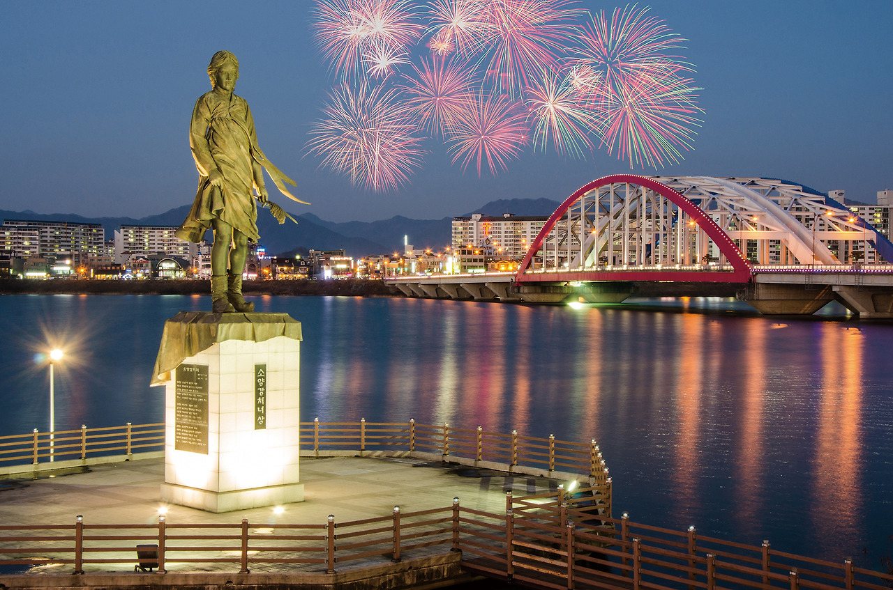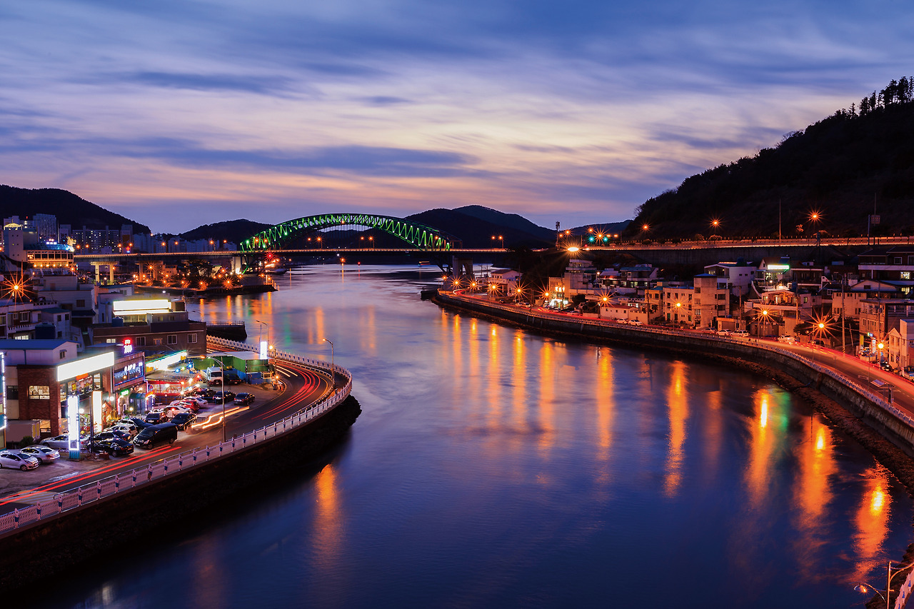 570개의 작은 섬들이 거센 파도를 막아주는 ‘동양의 나폴리’ 통영은 백석의 시처럼 ‘자다가도 일어나 바다로 가고 싶은 곳’이다. 통영의 많은 아름다운 명소들 중에서도 육지로 바다가 들어온 항구 ‘강구안’을 제일 먼저 찾게 된다. 강구안의 낮이 외지인들을 맞이하는 축제의 장이라면 강구안의 밤은 통영 사람들에겐 잔잔한 휴식이자 삶의 축복이다. 잔잔한 바다 물결 위로 드리워진 형형색색 빛의 조각들이 바람결에 이지러지는 항구의 풍경은 보는 이의 마음을 하나같이 낭만에 빠져들게 한다. 항구에 줄지어 선 고깃배와 넘실대는 푸른 바닷물을 보노라면 찌들었던 마음의 때가 씻겨나가는 기분마저 든다. 통영의 명물이 된 통영대교 또한 야경의 하이라이트다. 남망산국제조각공원은 통영 시민의 휴식처로 이곳에서 바라보는 한려수도의 야경은 남해안의 크고 작은 섬을 조망할 수 있어 색다른 재미를 더한다.