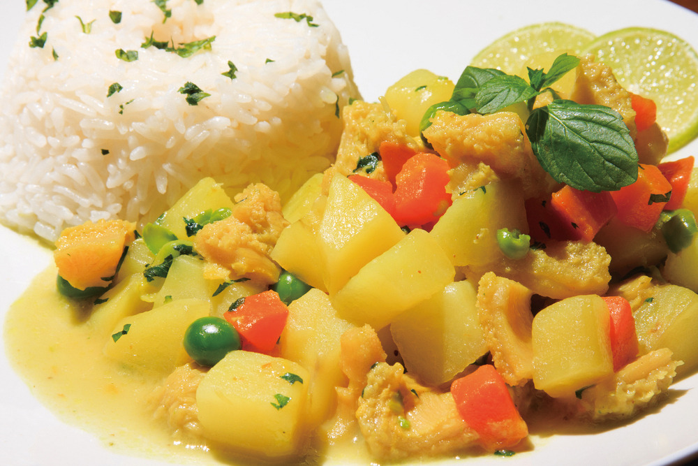 페루산 노란 칠리 페퍼가 들어간 감자 스튜 요리.