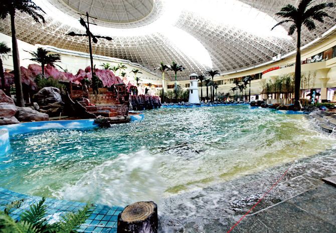 해양문화를 테마로 설계했기 때문에 해저지형을 볼 수 있고 해양기후도 느낄 수 있다. 그밖에 패스트푸드점인 해낙원에는 대형 오락실과 어린이 전용 놀이 온천도 있다. 스파를 받을 수 있는 8개의 트리트먼트룸과 30여 개의 온천 욕조가 있는 오션뷰 귀빈실도 갖췄다. 귀빈실은 지중해식, 발리식, 태국식, 일본식, 중국식 등 5가지이며 별도의 엘리베이터가 설치되어 있다. 원천수는 90℃ 이상 고온으로 규산, 브룸, 나트륨, 불소 등 30여 가지 광물질을 함유해 류머티즘, 부인병 등에 효험이 있다.