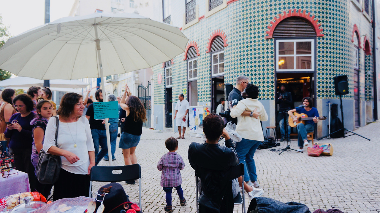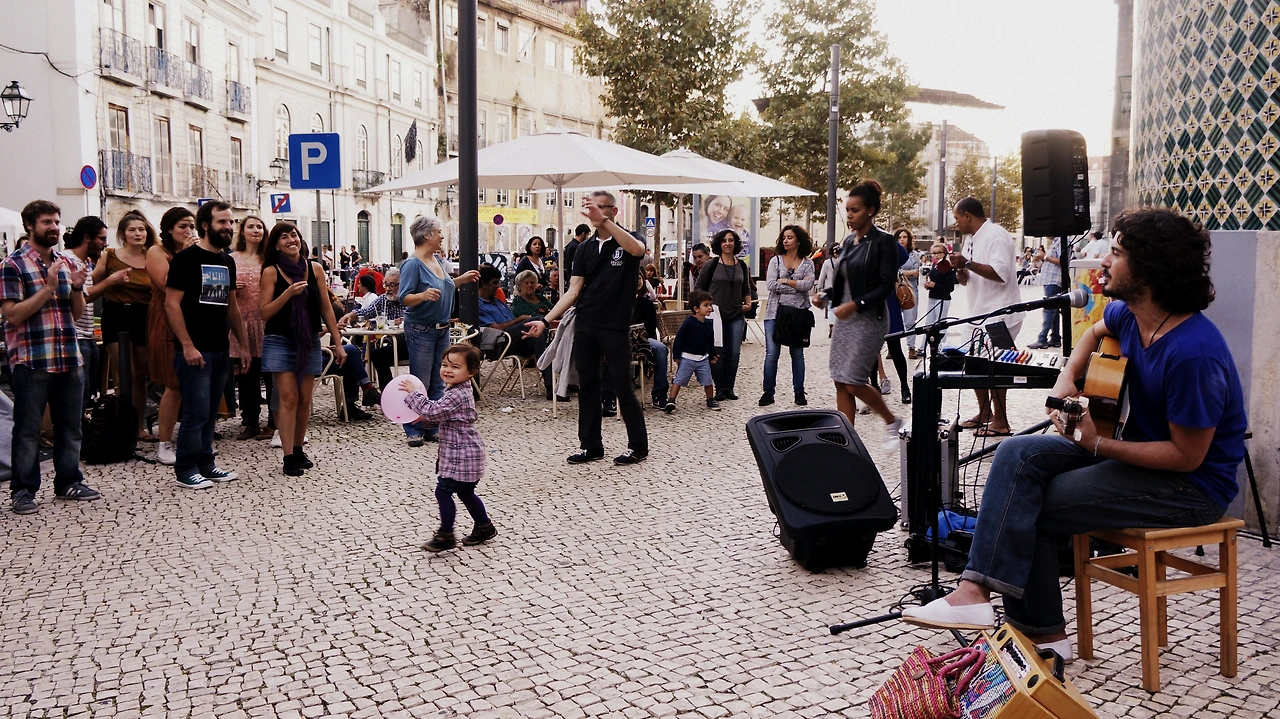 초겨울임에도 여름처럼 따뜻했던 어느 날, 34개월 미루를 데리고 어김없이 리스본 산책에 나섰다. 집에서 언덕을 따라 쭉 내려가면 있는 인텐덴떼(Intendente) 광장에서 작은 벼룩시장이 열렸다는 얘기를 들어서였다. 혼자서 5분이면 갈 거리를 여기저기 기웃거리는 미루와 함께 30분도 넘게 걸려 간 광장은 왜 이제 왔냐는 듯 우리를 반겨주었다. 시장은 생각보다 작았지만 분위기는 완벽했다. 딱 맞게 모인 적당한 수의 사람들, 허투를 게 없는 가판대의 물건을 살피며 흥정하는 사람들, 살짝 고개를 꺾은 햇살 아래, 수염으로 가렸지만 잘 생긴 얼굴은 감출 수 없는 젊은 남자가 기타를 치고 (오빠, 웬만하면 그 얼굴 좀 제대로 보여주지.) 그 연주에 맞춰 손뼉 치고 춤추는 사람들.